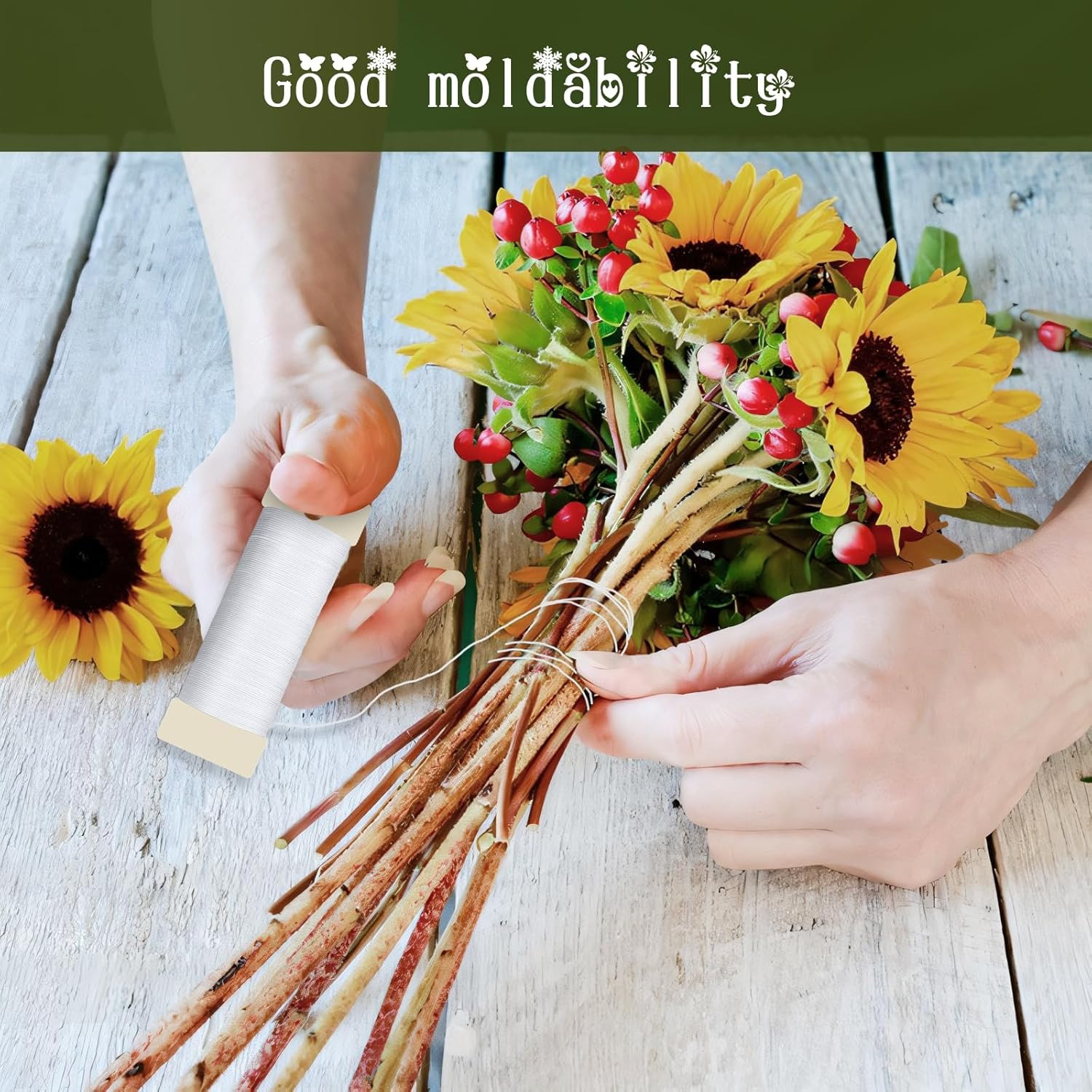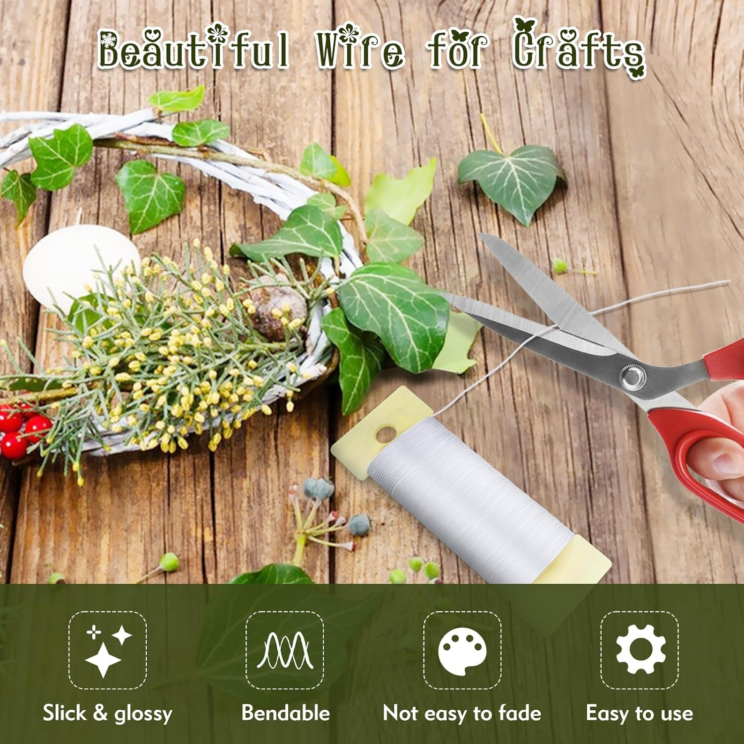 White Floral Wire, 38 Yards 114 Ft 22 Gauge Metal Wire for Crafts, Flexible Wrea