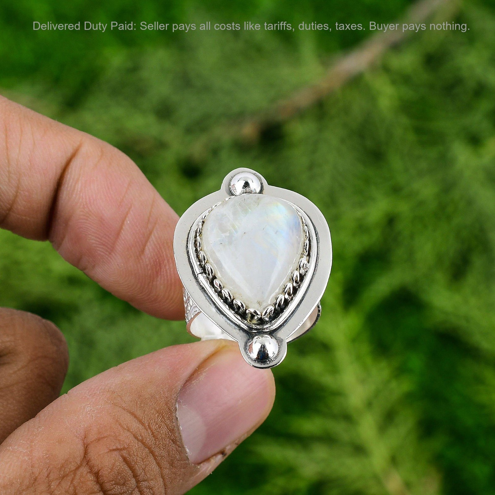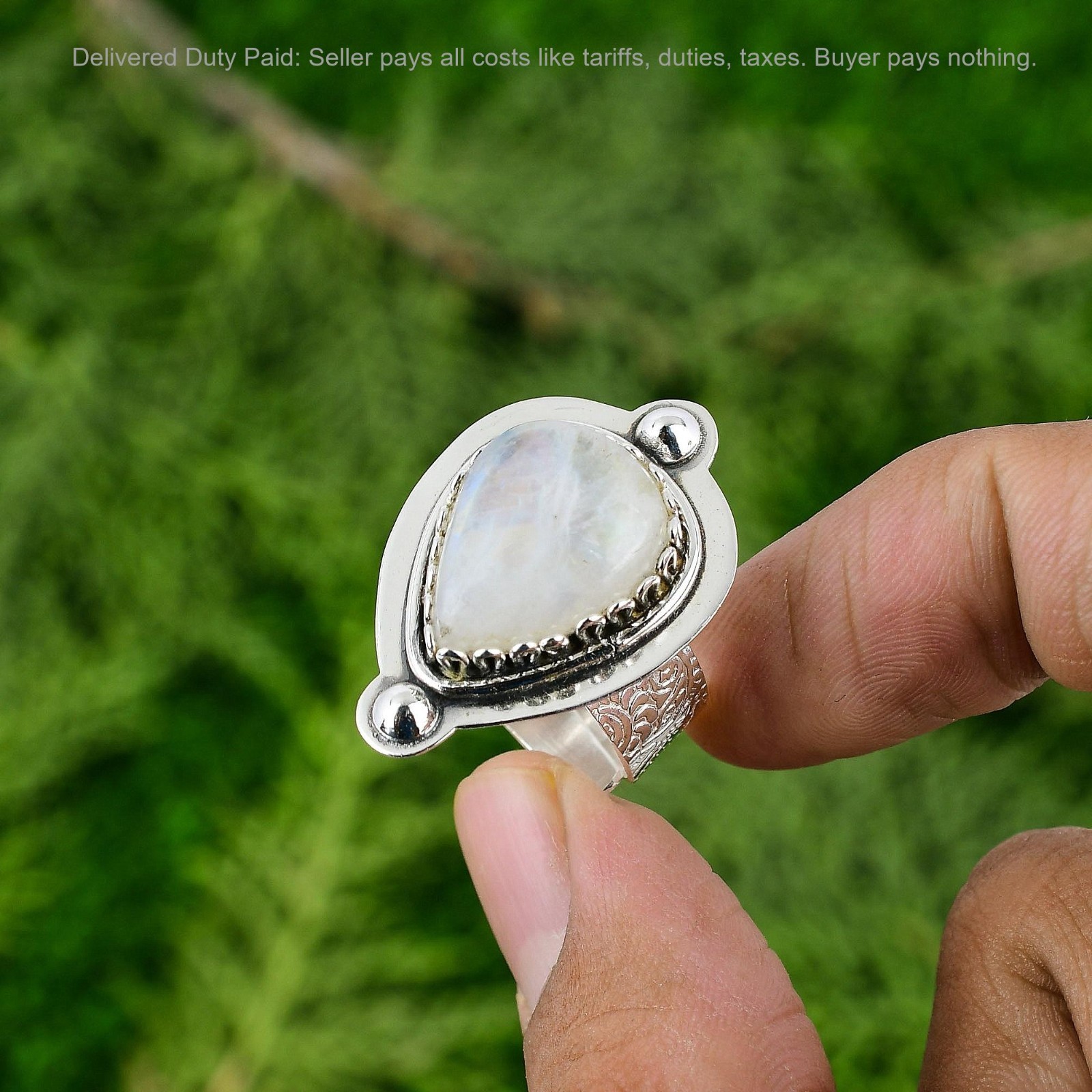 Halloween Deal Natural Rainbow Moonstone Boho Statement Ring 925 Sterling Silver