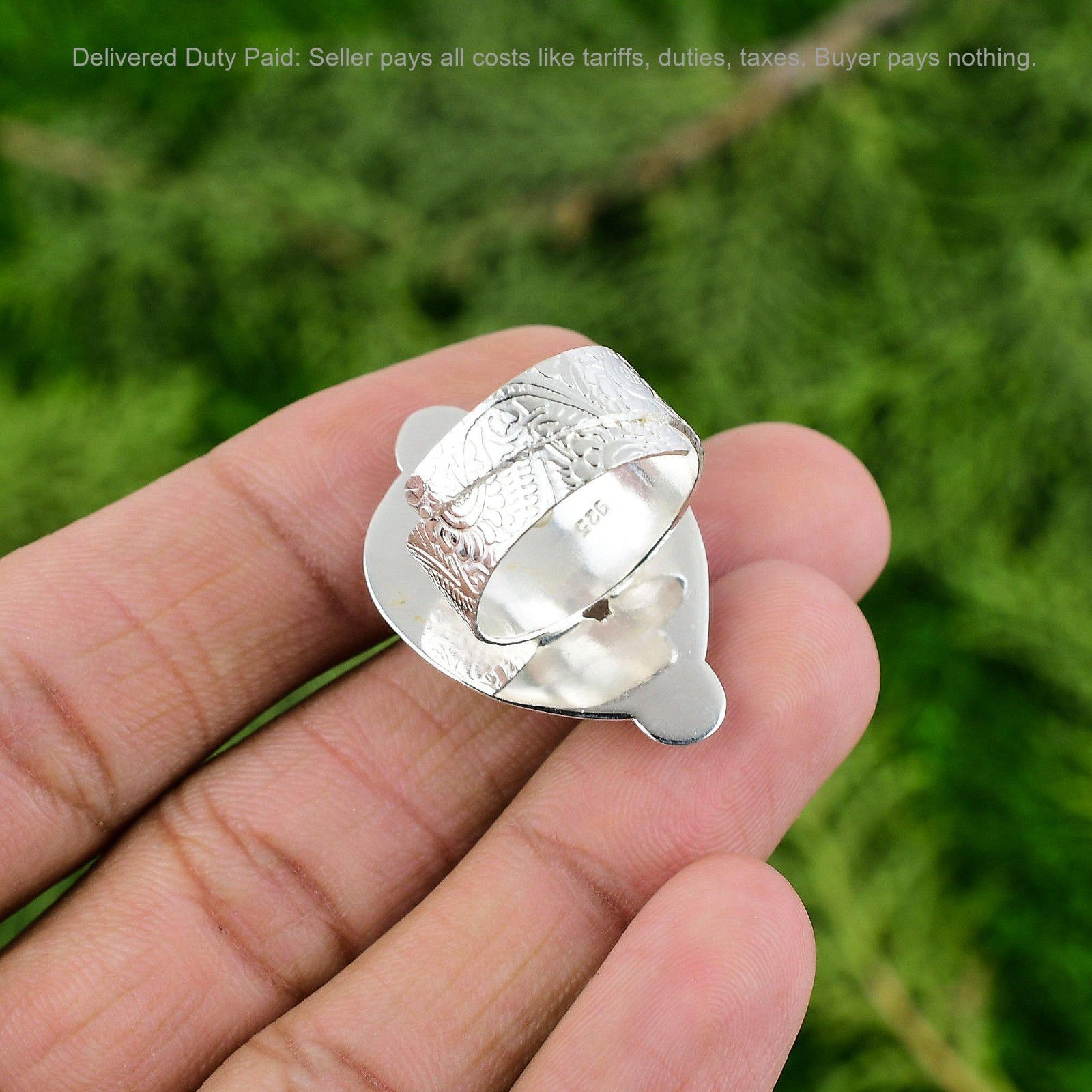 как выглядит Halloween Deal Natural Rainbow Moonstone Boho Statement Ring 925 Sterling Silver фото
