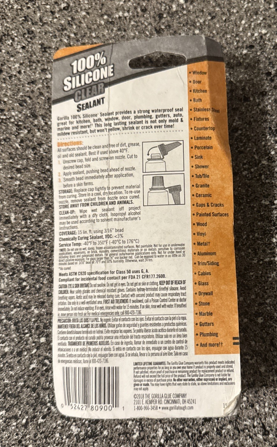 как выглядит Gorilla Waterproof Caulk Seal100 Silicone Sealant, 2.8oz Squeeze Tube, Clear фото