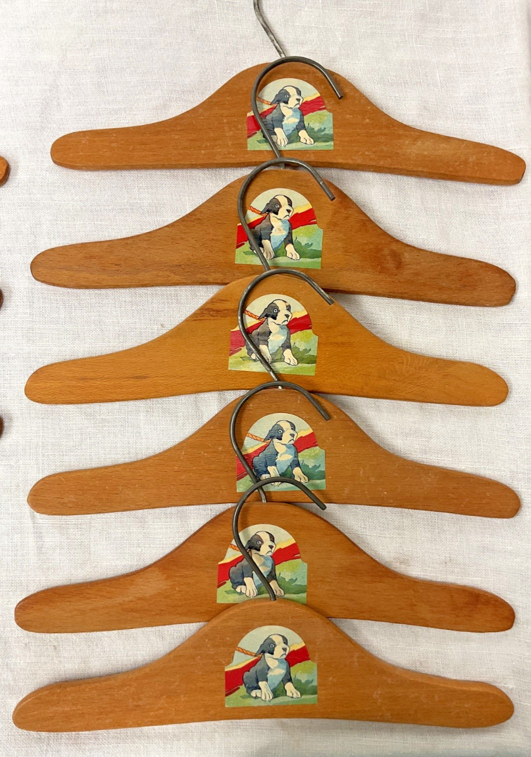 Lot of 10 VTG WOOD Wooden Baby Chid Clothes Hangers Lot Puppy Dog Mother Goose