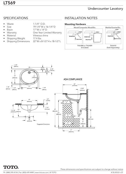 Особенности: TOTO LT569 17" Undermount Bathroom Sink with