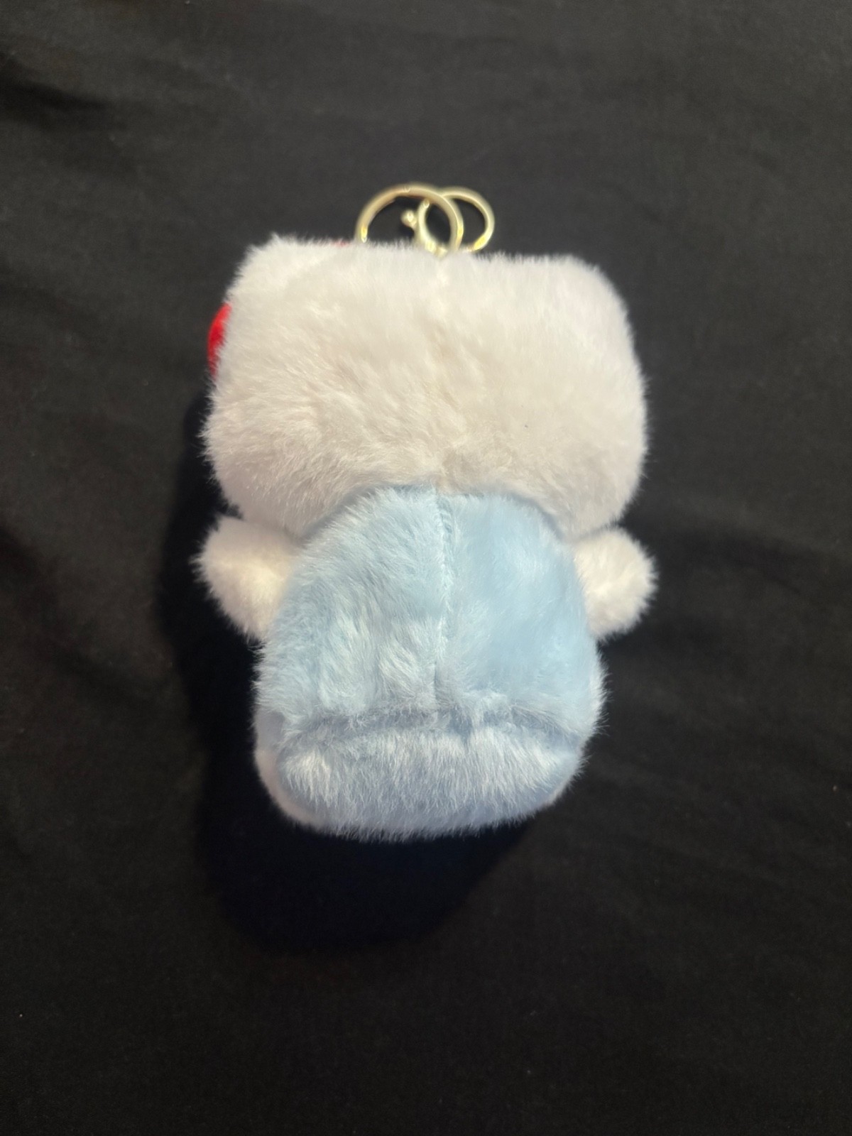 как выглядит hello kitty plush key chain in blue with red bow holding red flower фото