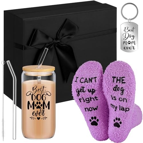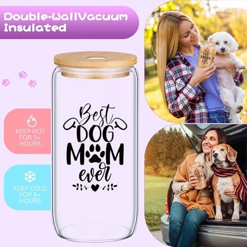 Christmas Best Dog Mom Gifts for Women Dog Lovers 16 oz Glass Cup with Purple
