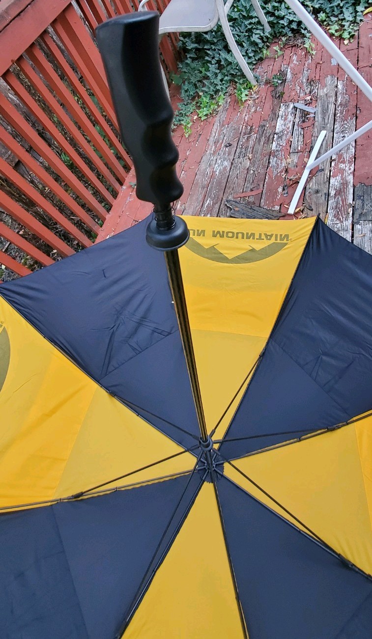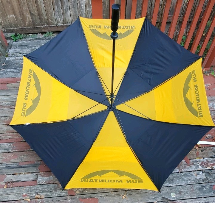 как выглядит Barely Used Sun Mountain Black/yellow Golf Umbrella w/Sheath фото