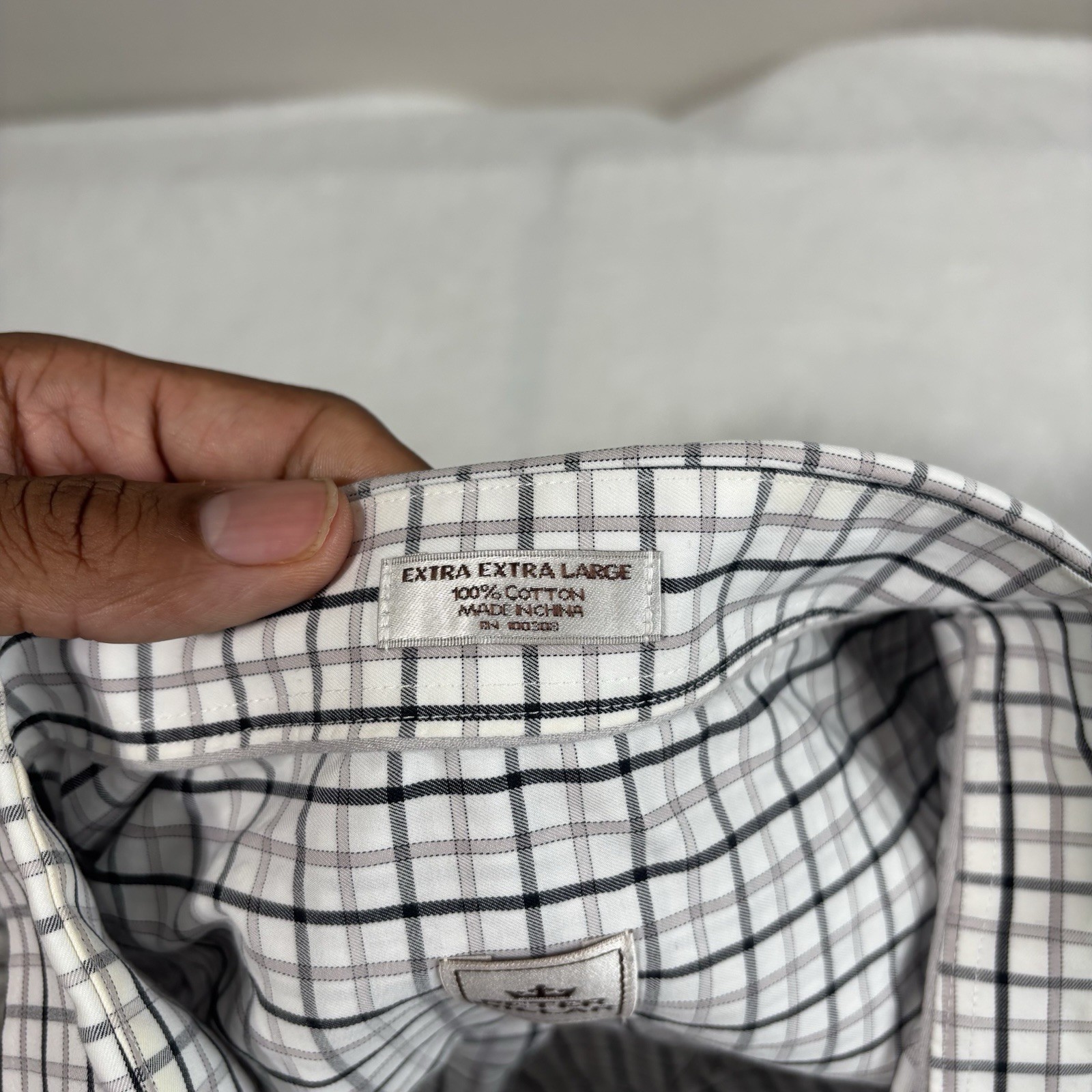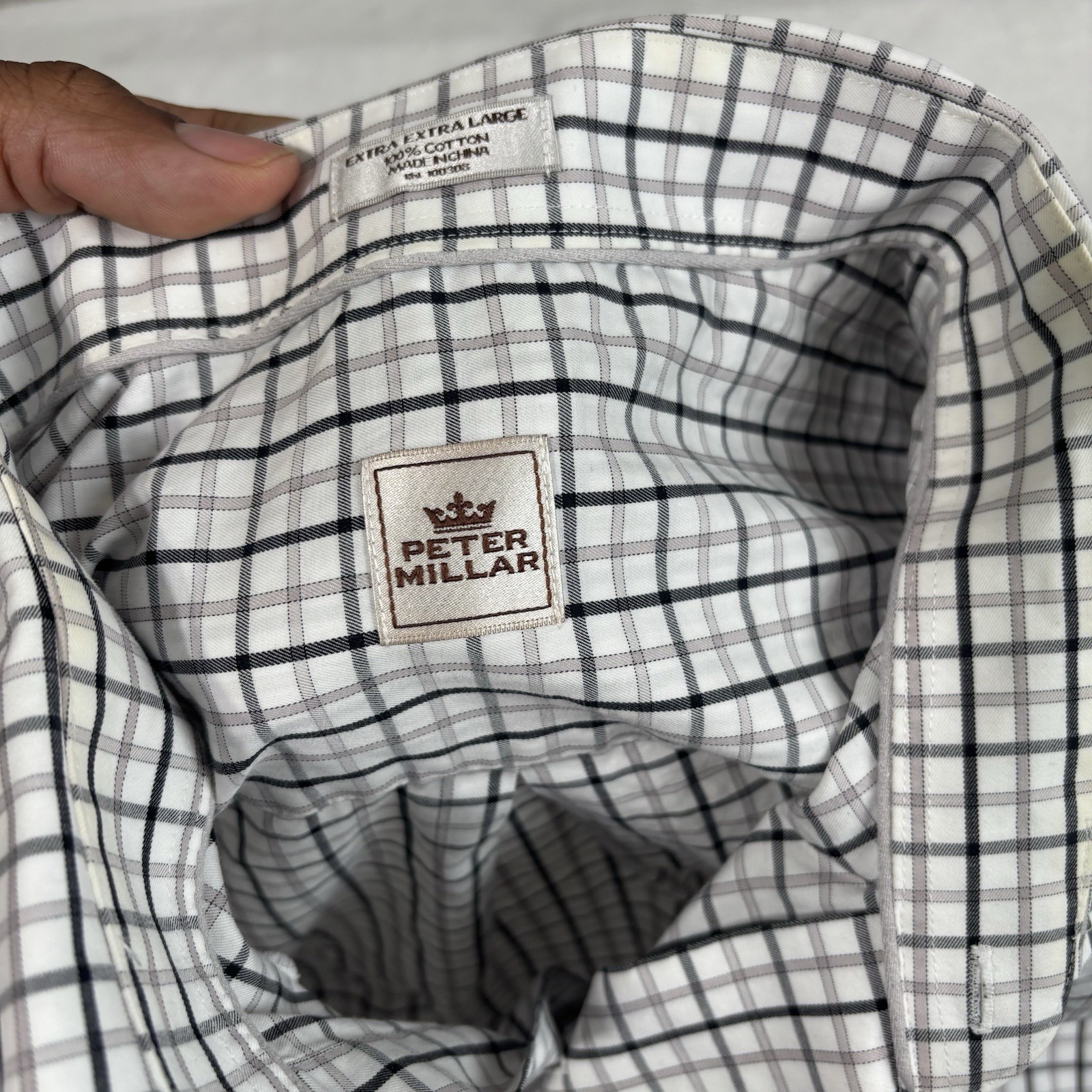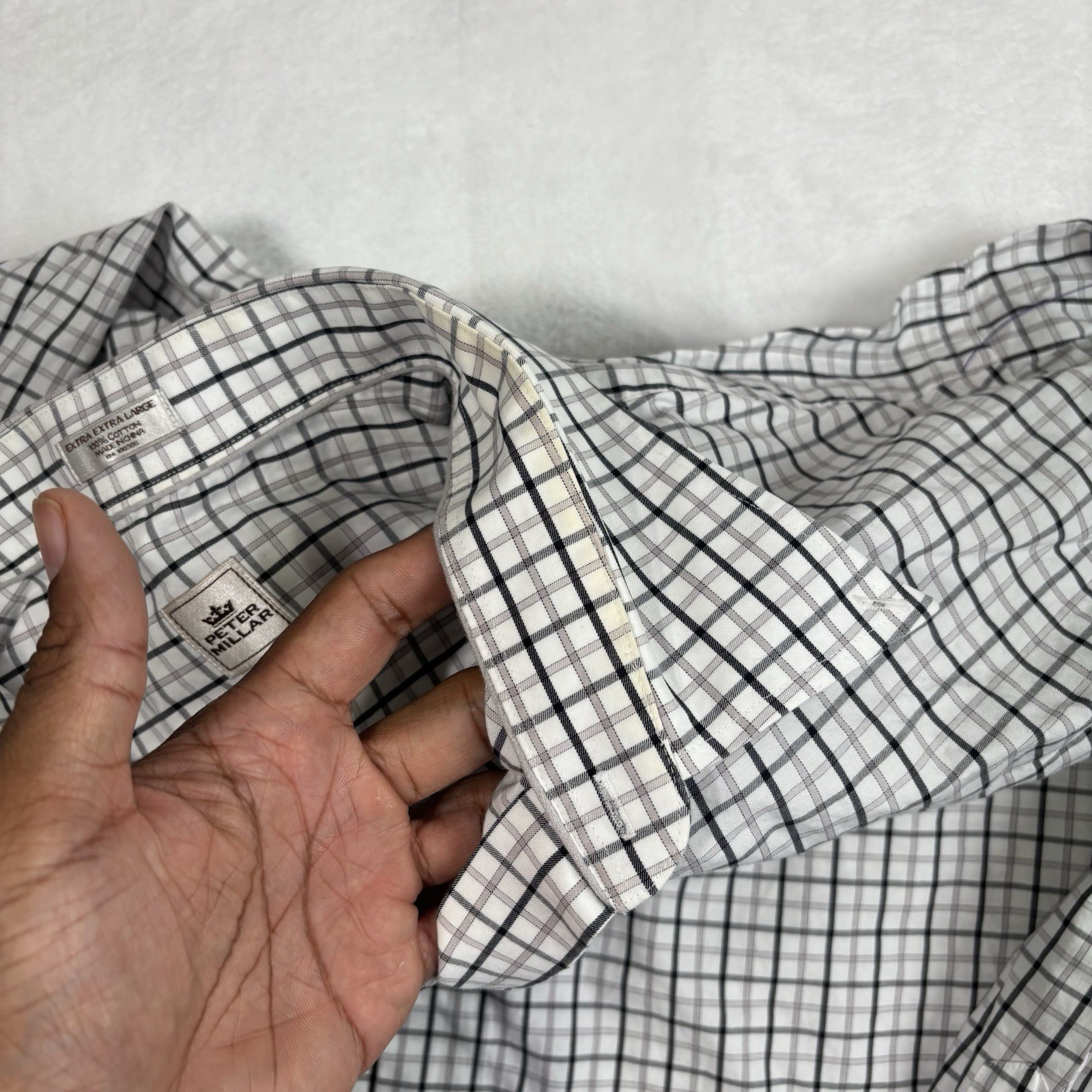 Peter Millar White Plaid Button Down Long Sleeve Collared Dress Shirt Men's 2XL