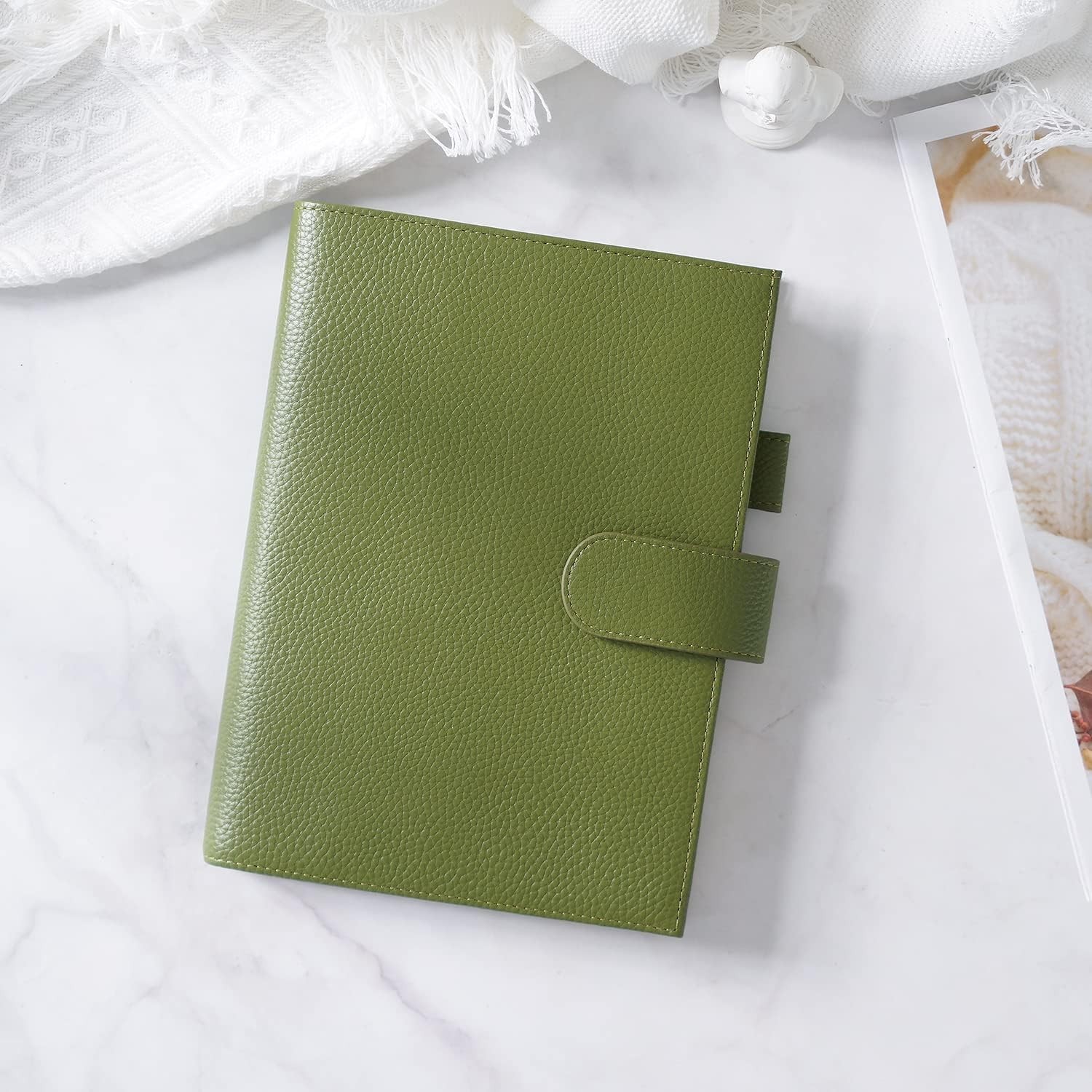 Stylish A5 Leather Notebook Cover in Pebbled Olive - Perfect for Travel Gifts