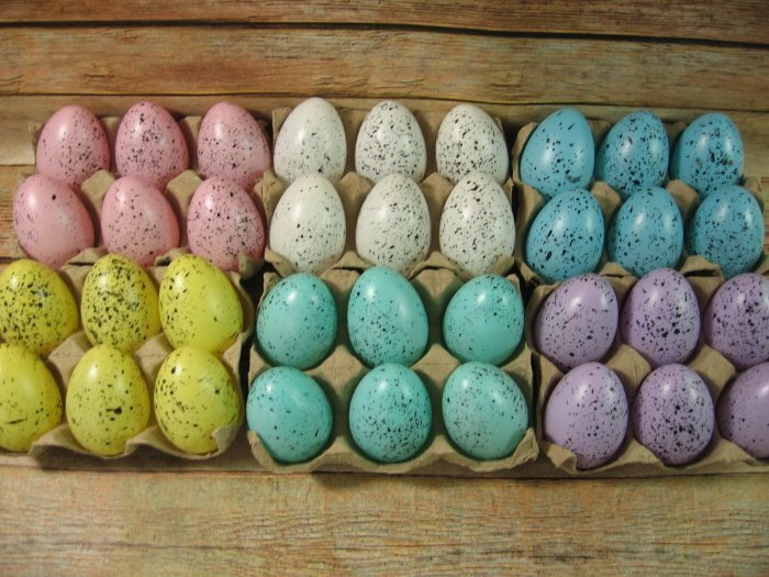 как выглядит Lot of 36 Speckled Eggs Plastic with 1/2 Doz Holders Multi Color Not Split фото