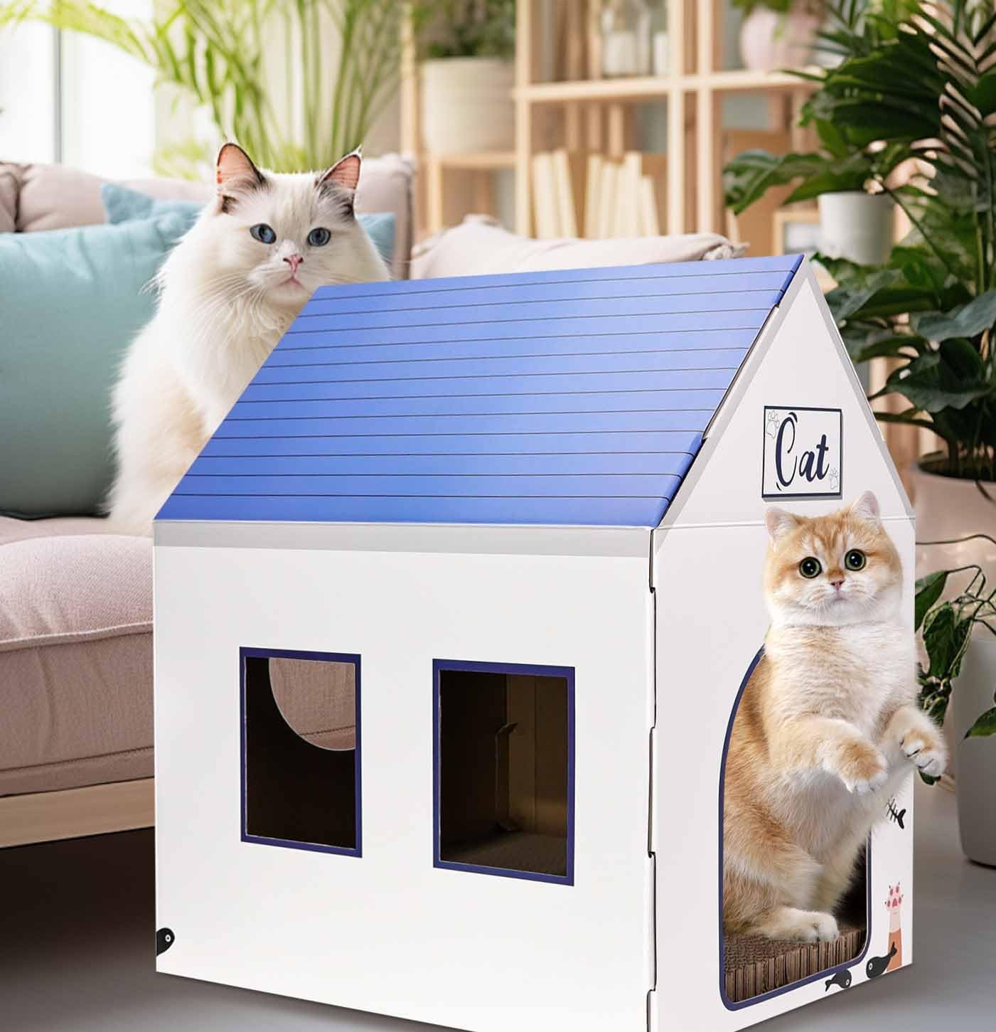 Cardboard Cat House with Scratching Pad Large Cat Scratch Playhouse Scratcher...