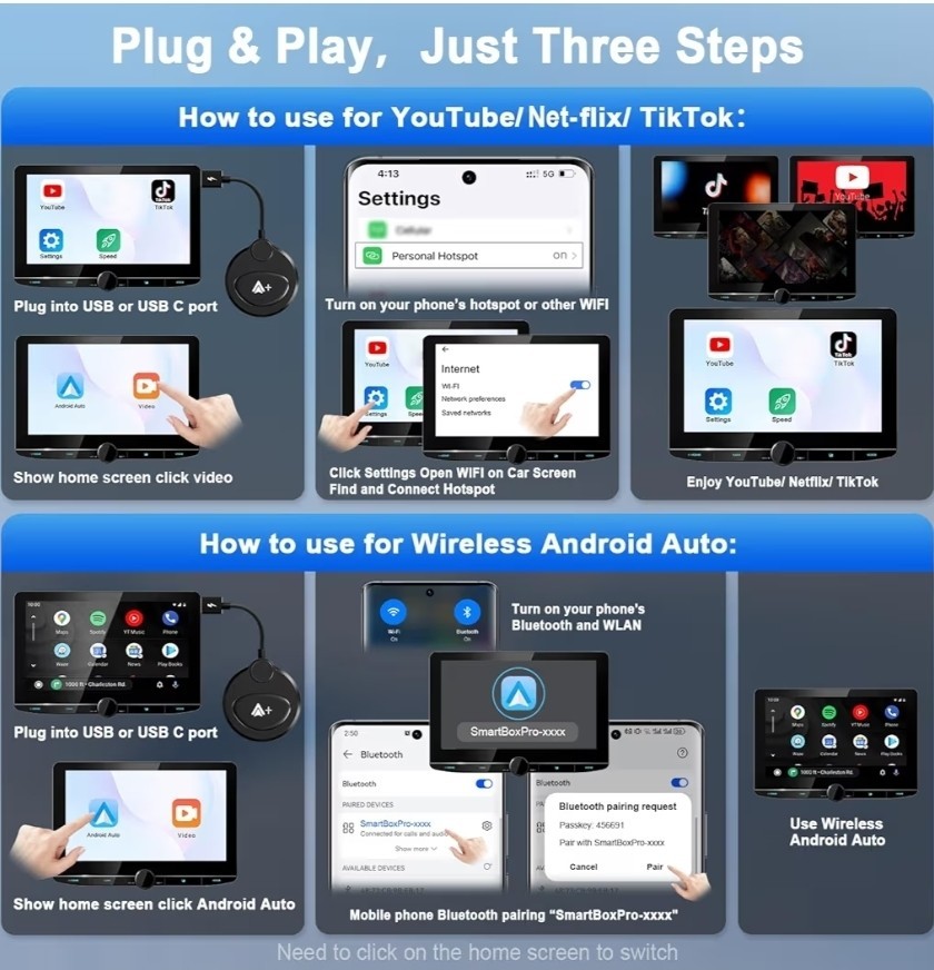 Wireless Carplay Adapter Built in YouTube Net-Flix,Carplay Wireless Magic Box...
