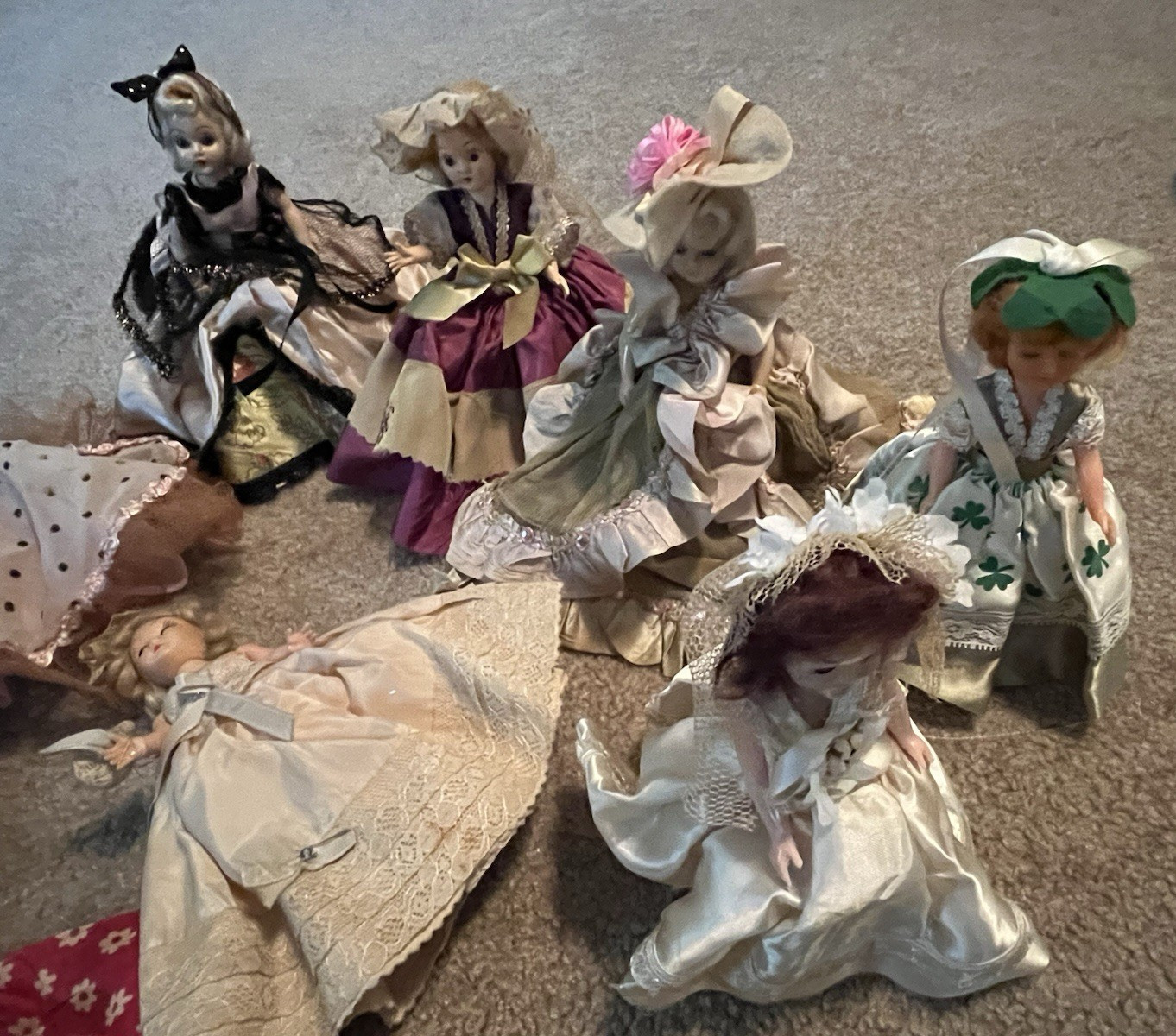 VINTAGE STORY BOOK DOLLS LOT OF 18 - EYES OPEN CLOSE - ARMS MOVE - All 6-8