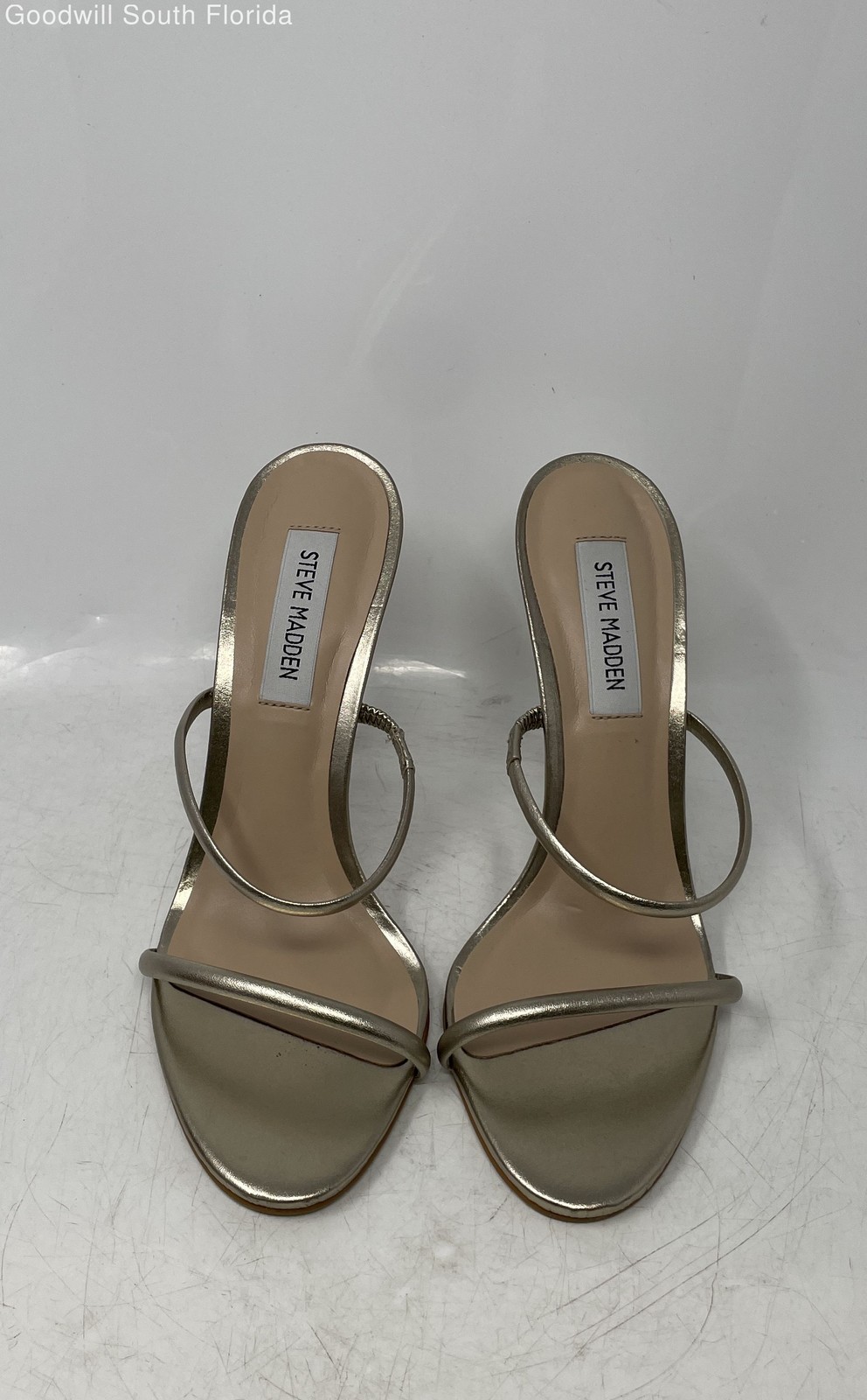 как выглядит Steve Madden Womens Mina Gold Leather Stiletto Heel Slip-On Slide Sandals Sz 8M фото