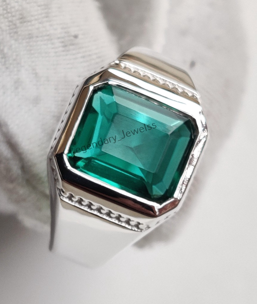 как выглядит Green Emerald Gemstone Ring For Mens With 925 Sterling Silver Emerald Cut Ring фото