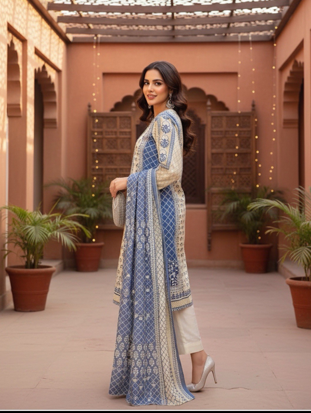 Elegant Blue Off-White Shalwar Kameez Premium Stitched Pakistani Indian Su