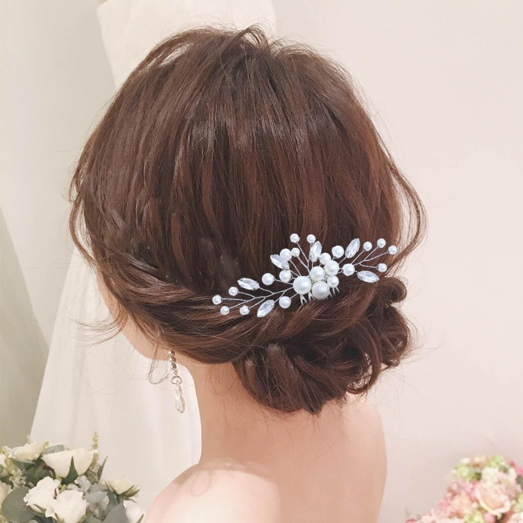 Silver Pearl Wedding Hair Comb Bridal Rhinestone Headpiece Crystal Accessory
