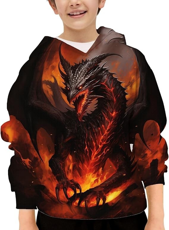 Fire Dragon 3D Print Hoodie Pullover Sweatshirt Unisex Fantasy Graphic Outfit