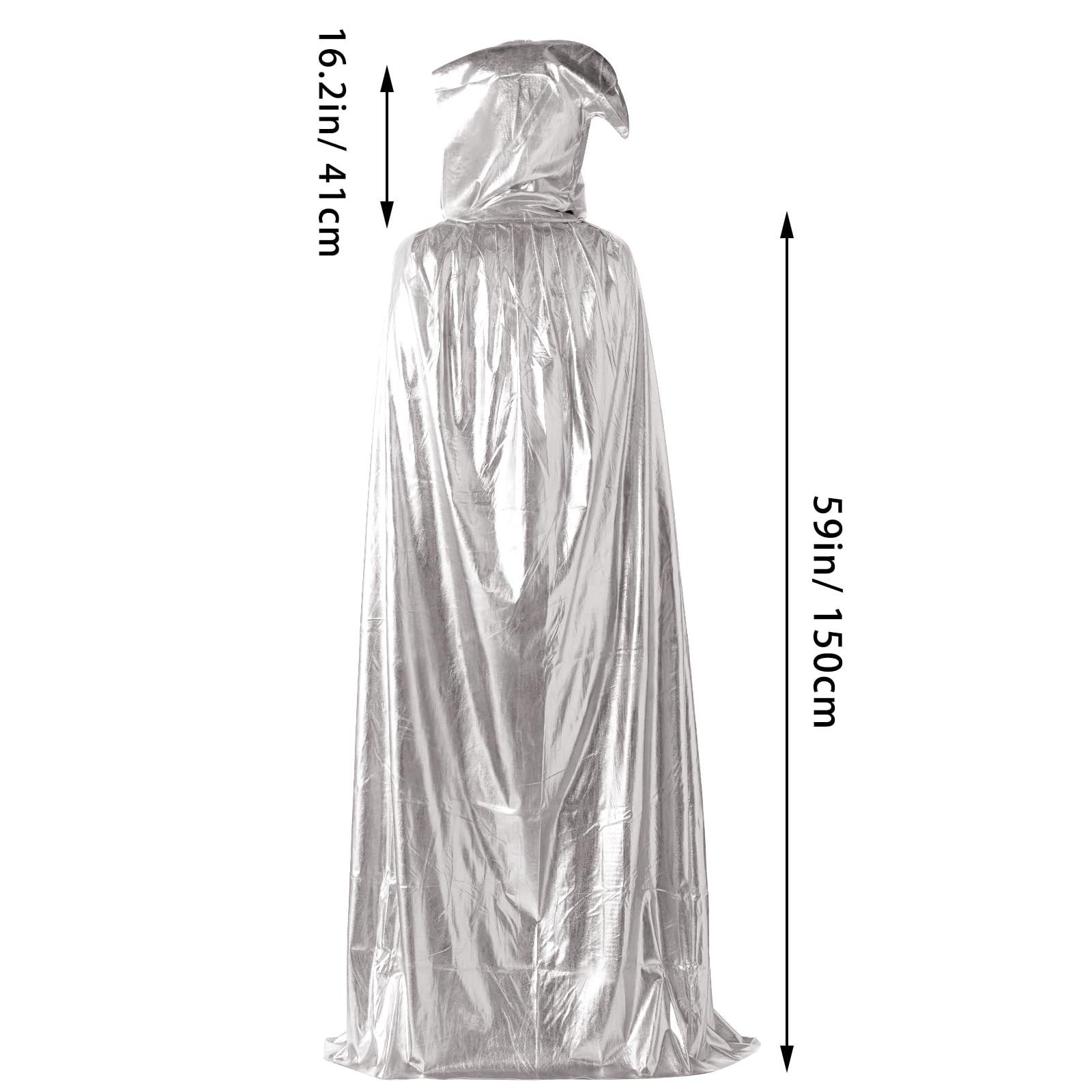 Silver Cloak with Hood Halloween Wizard Hooded Cape Full Length Robe for Wome...