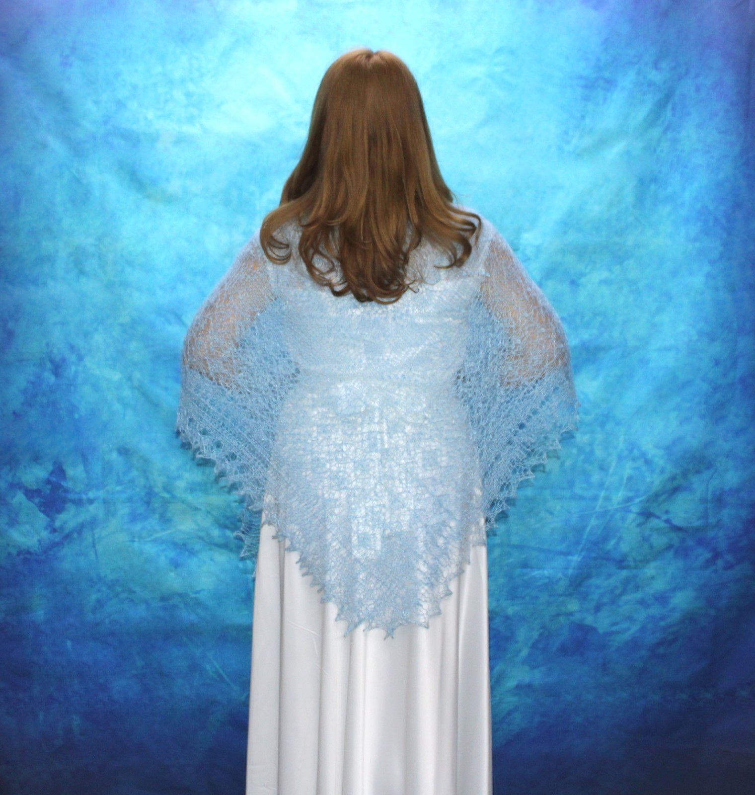 Light blue Russian embroidered shawl, Orenburg wool wrap, Wedding stole, Scarf