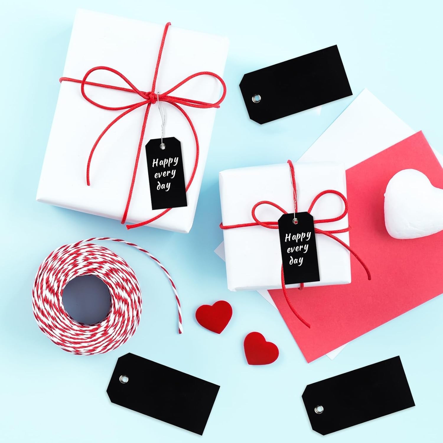 150 Pcs Black Tags with String Wire Plastic Tags 4 3/4 x 2 3/8 Shipping Labels