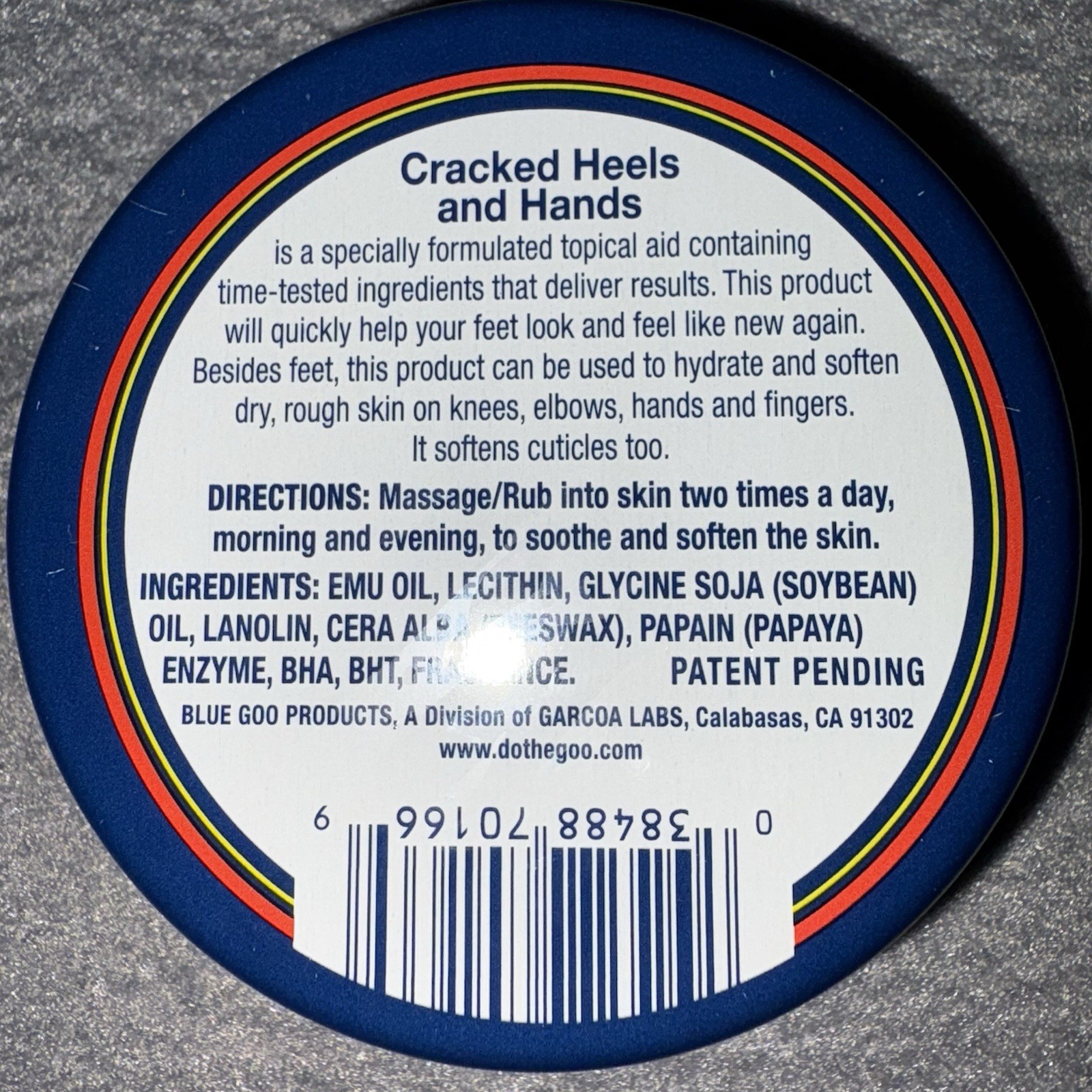 Blue Goo Cracked Heels And Hands Skin Softener 2 oz Emu Oil Beeswax Ointment