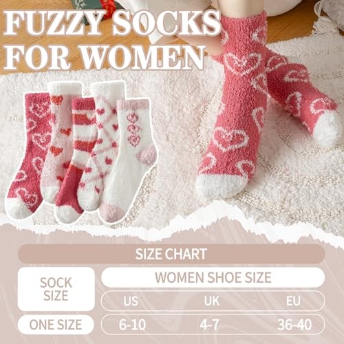 Clothirily Fuzzy Socks for Women, Fluffy Socks Womens, Pink A, 5 Pairs, 6-10