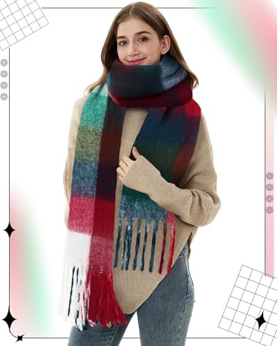 4 Pcs Large Chunky Plaid Scarf for Women Checked Scarf Shawl Retro Color