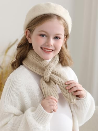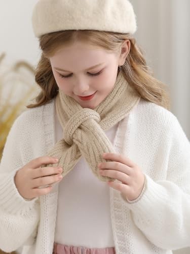 Kids Girls Knit Scarf Toddler Warm Winter Cross Tie Wrap Neck Warmer Beige