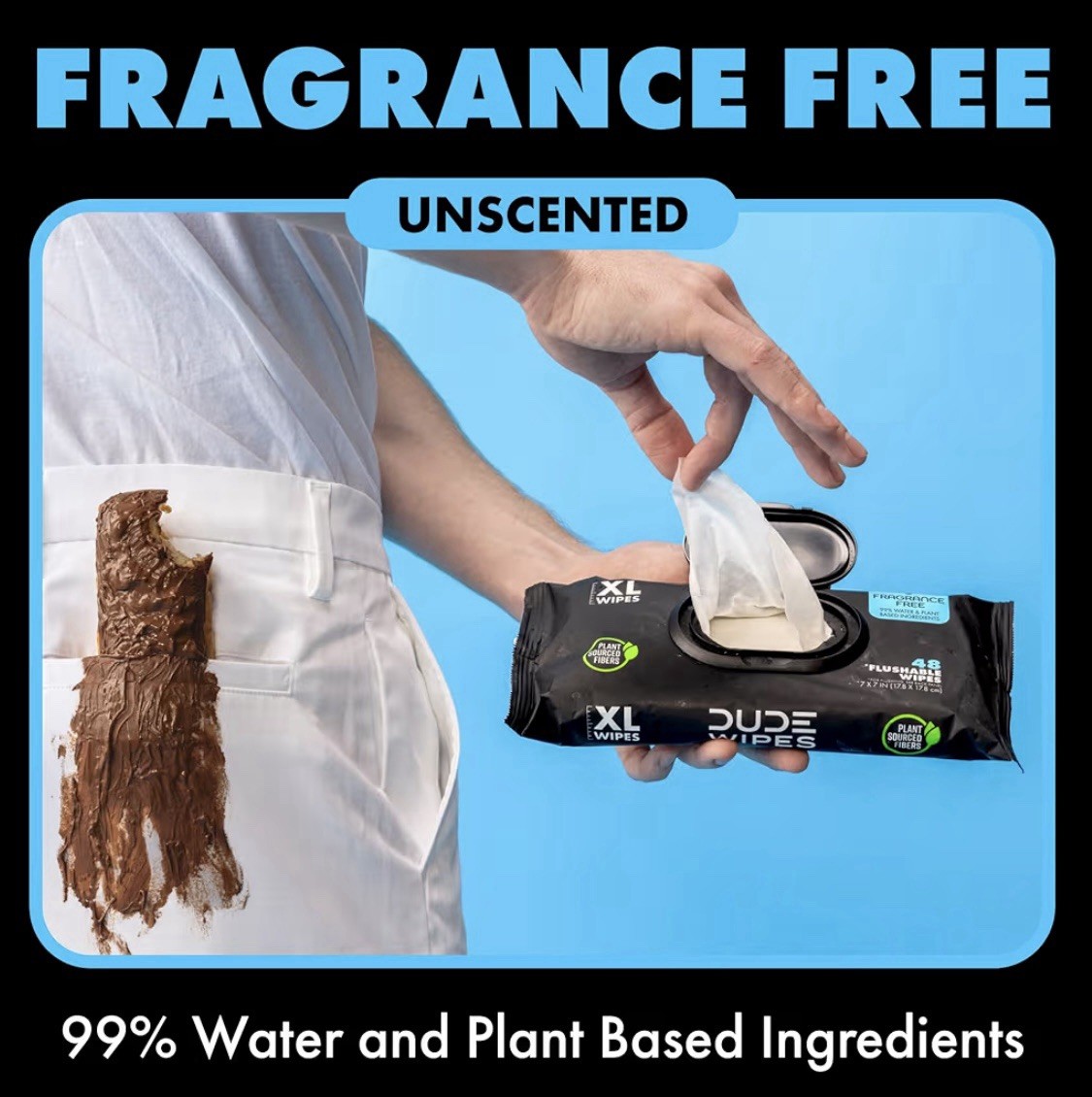 DUDE Wipes - Flushable Wipes - 6 Pack, 288 Wipes - Unscented XL Adult Wipes