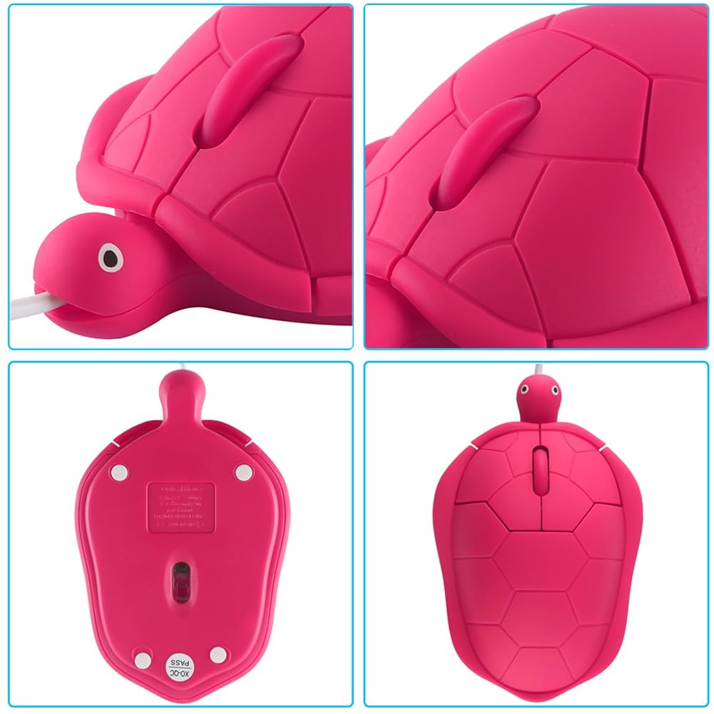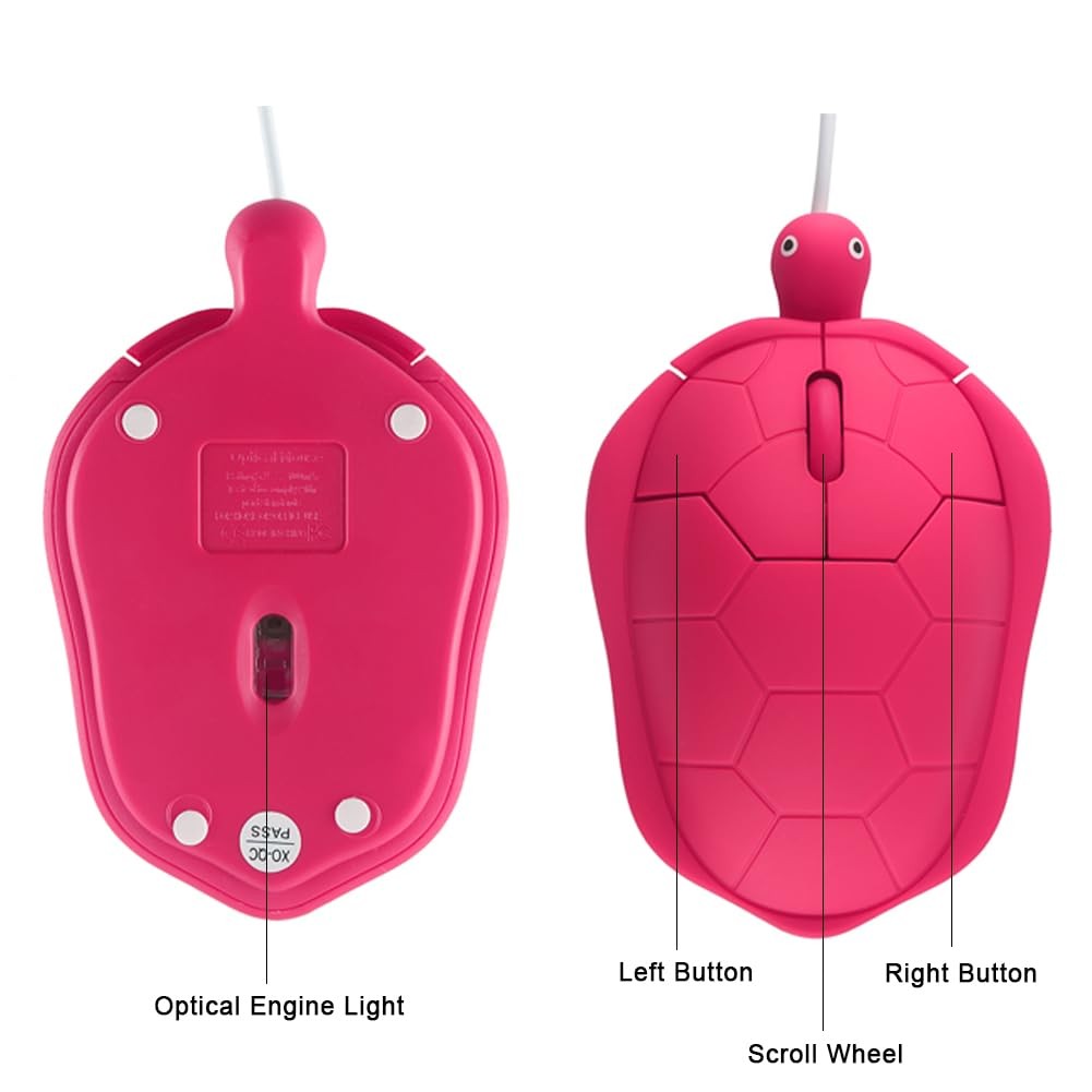 Wired Mouse, Cute Turtle Mouse, Silent Corded Computer Mouse with 1 Random Co...