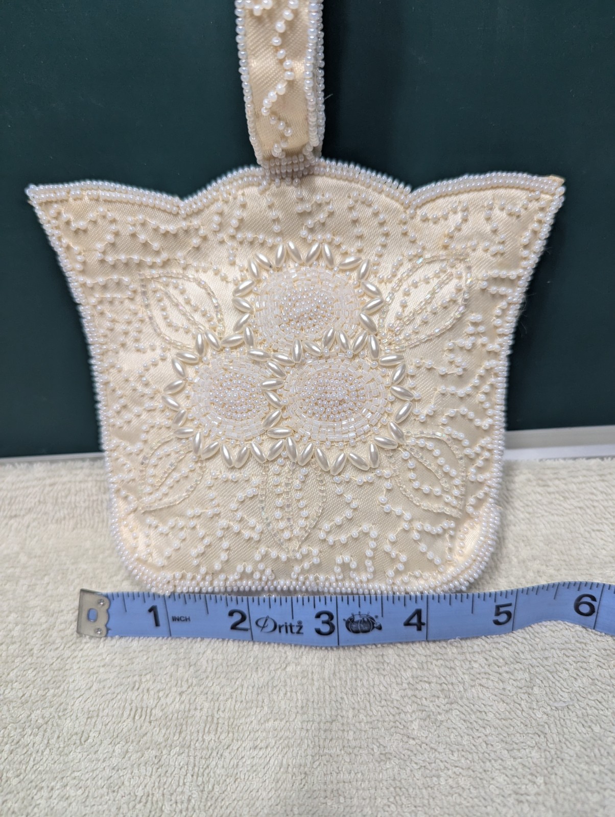 Vintage Walborg Hand Beaded Cream And White Small Purse Clutch Strap Satin Lined