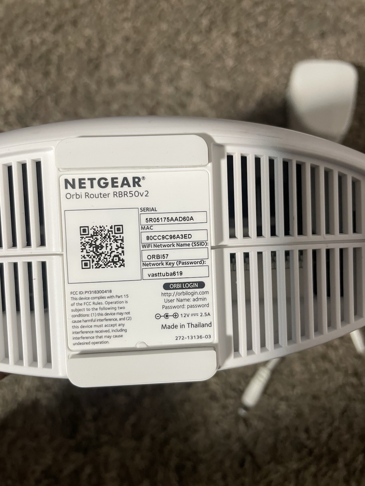 Netgear Orbi RBR50v2 Router AC3000 Tri-Band Mesh Wi-Fi Very Good Condition
