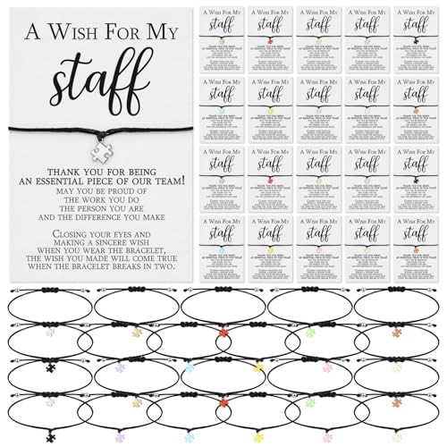 Employee Appreciation Gifts Bulk Puzzle Piece Wish Bracelets with A Wish 50