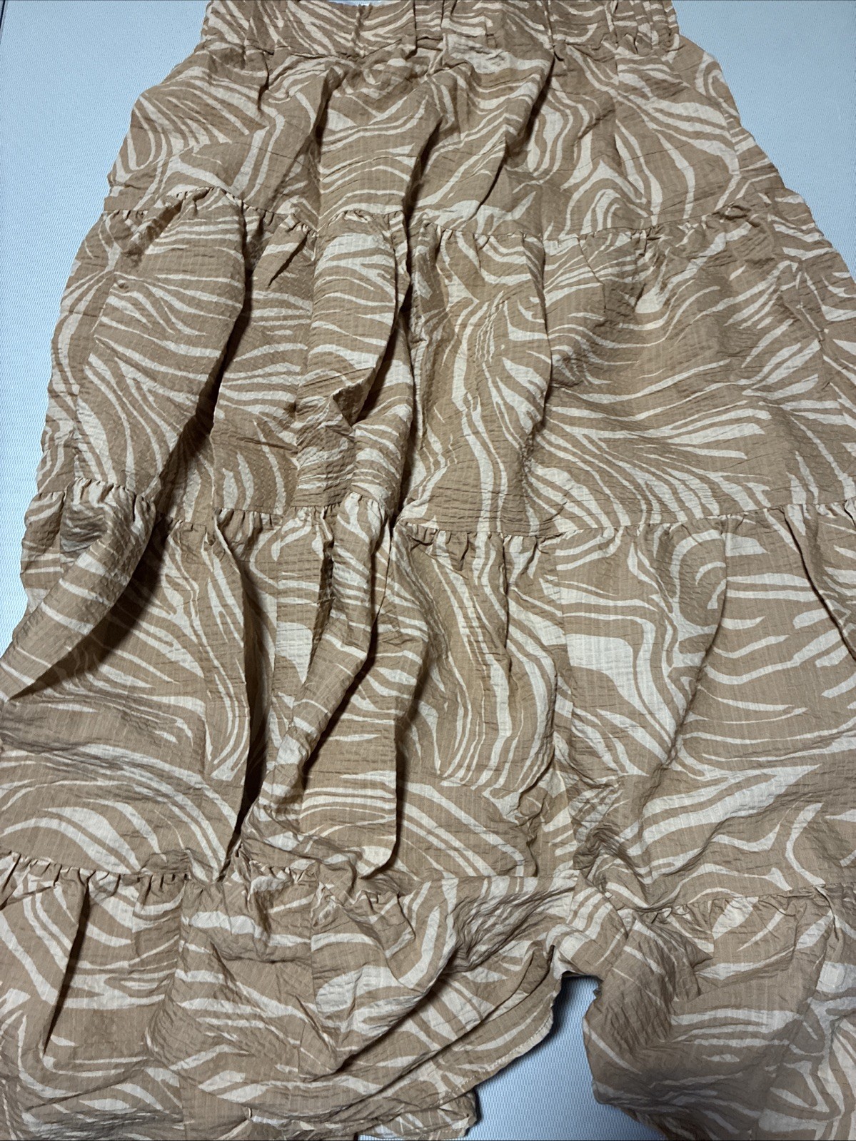 H M Patterned Tan Zebra Casual Lightweight Pockets Midi Skirt Size M NWT