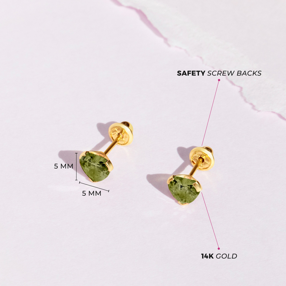 14k Yellow Gold Girl's 5mm Simulated Birthstone CZ Heart Screw Back Earrings