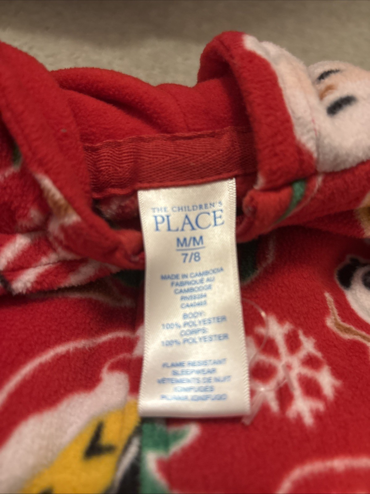 Children s Place Christmas one piece Pajamas Hooded Size 7/8