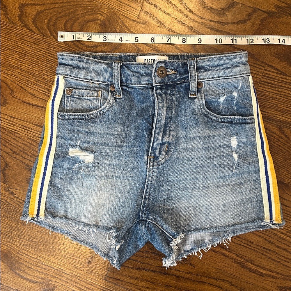 Pistola Winston racer stripe cut off shorts size 25 blue and gold stripe
