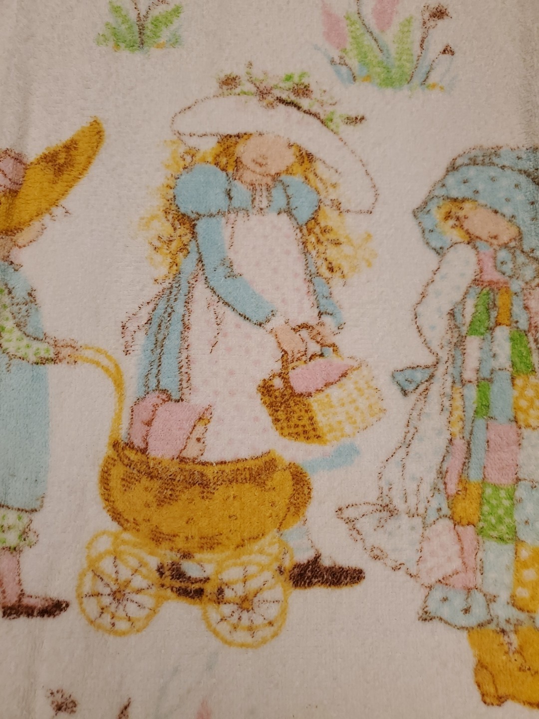как выглядит 1970s Vintage Holly Hobbie Bath Towel Washcloth Set Royal Treasure AGC фото