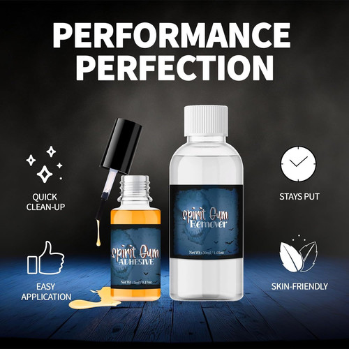 CHASPA Spirit Gum Adhesive and Remover Kit: Brown glue Transparent