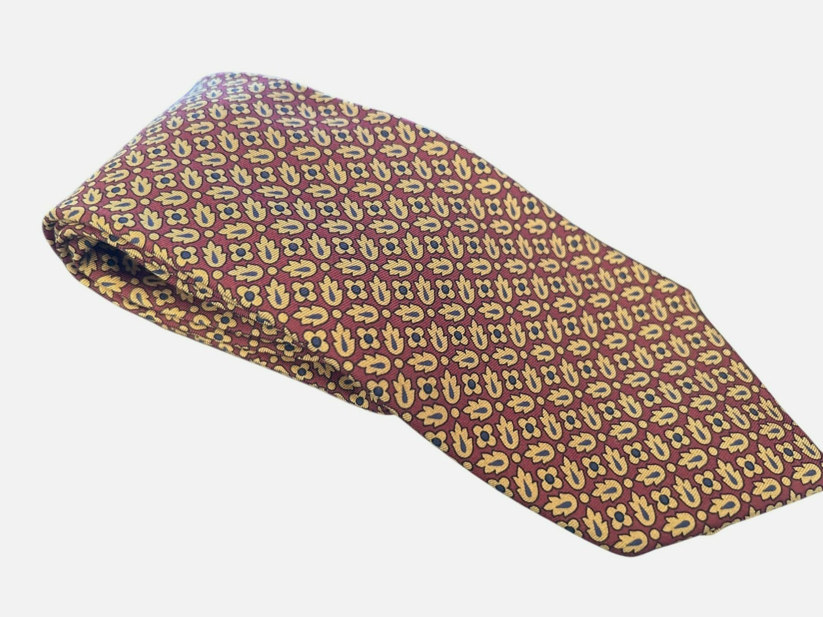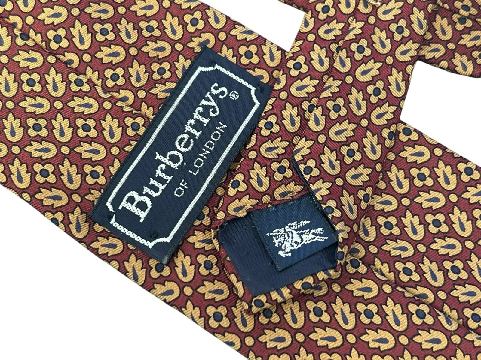 как выглядит Vintage 1990 Red Gold Burberrys Silk Tie Classic Timeless Geometric Pattern Rare фото
