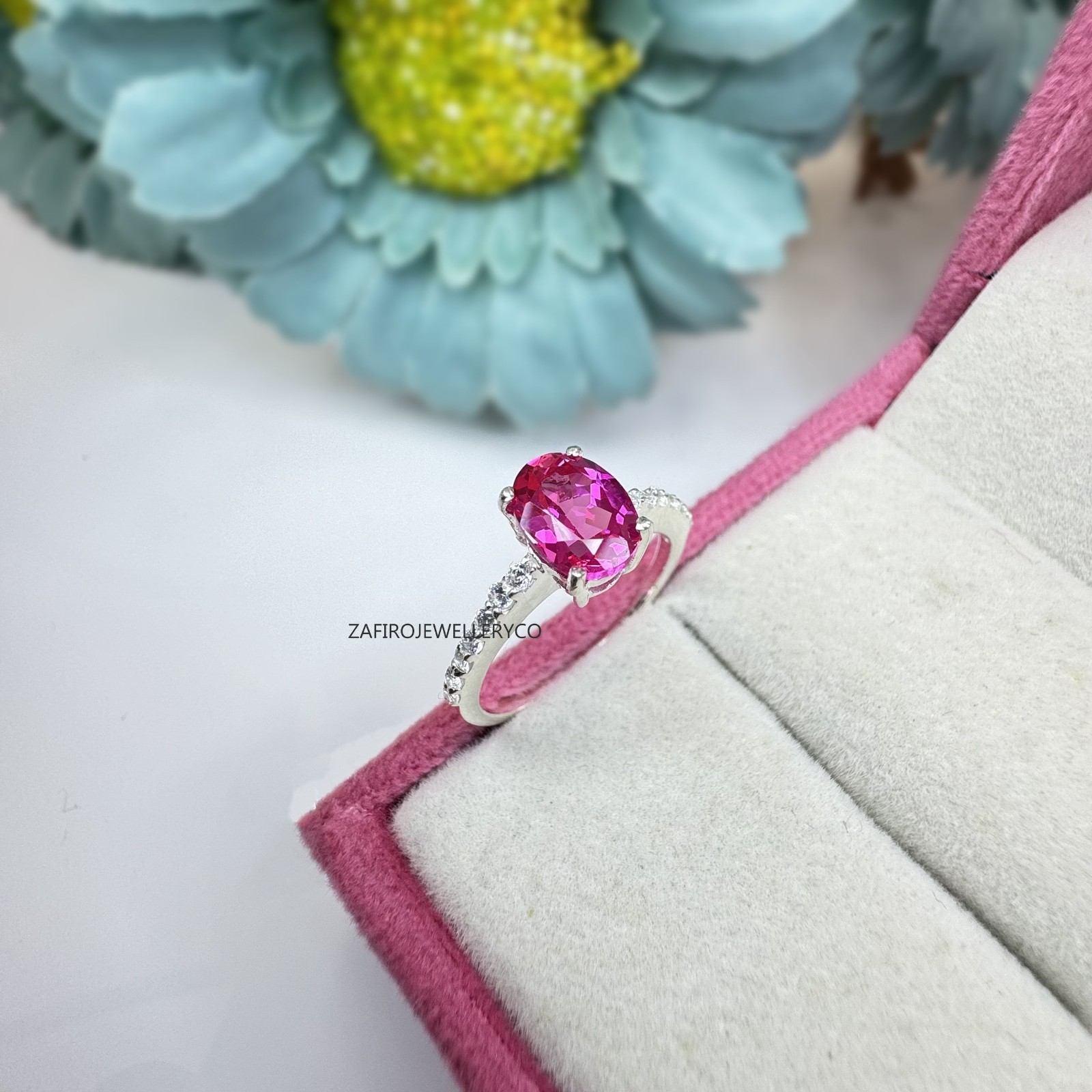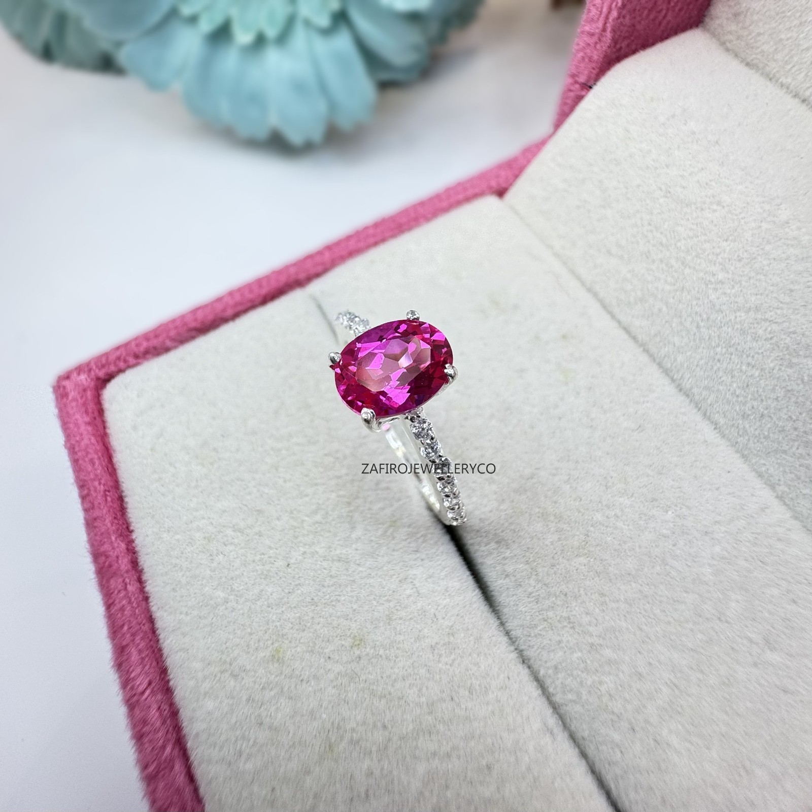 Pink Sapphire Ring, Bridal Ring, 925 Sterling Silver, Wedding Ring, Lab Created