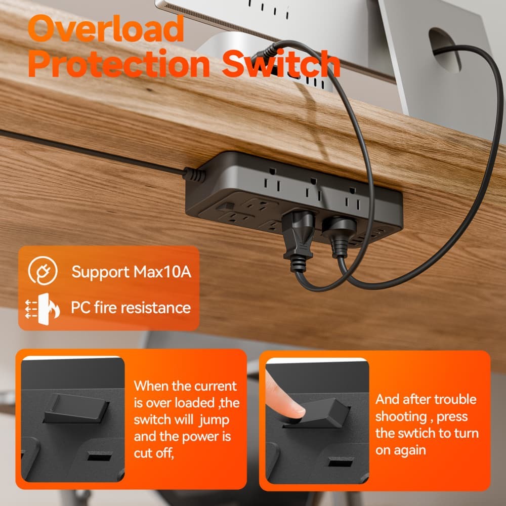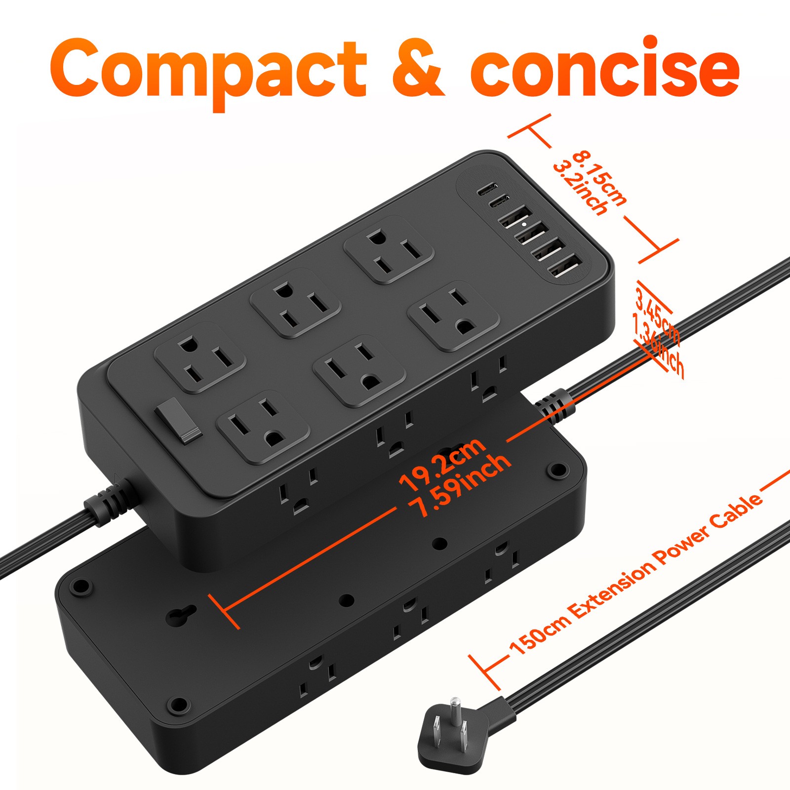 18 In 1 Power Strip Surge Protector 5FT 12AC Outlets 4USB Ports 2Type C Port US