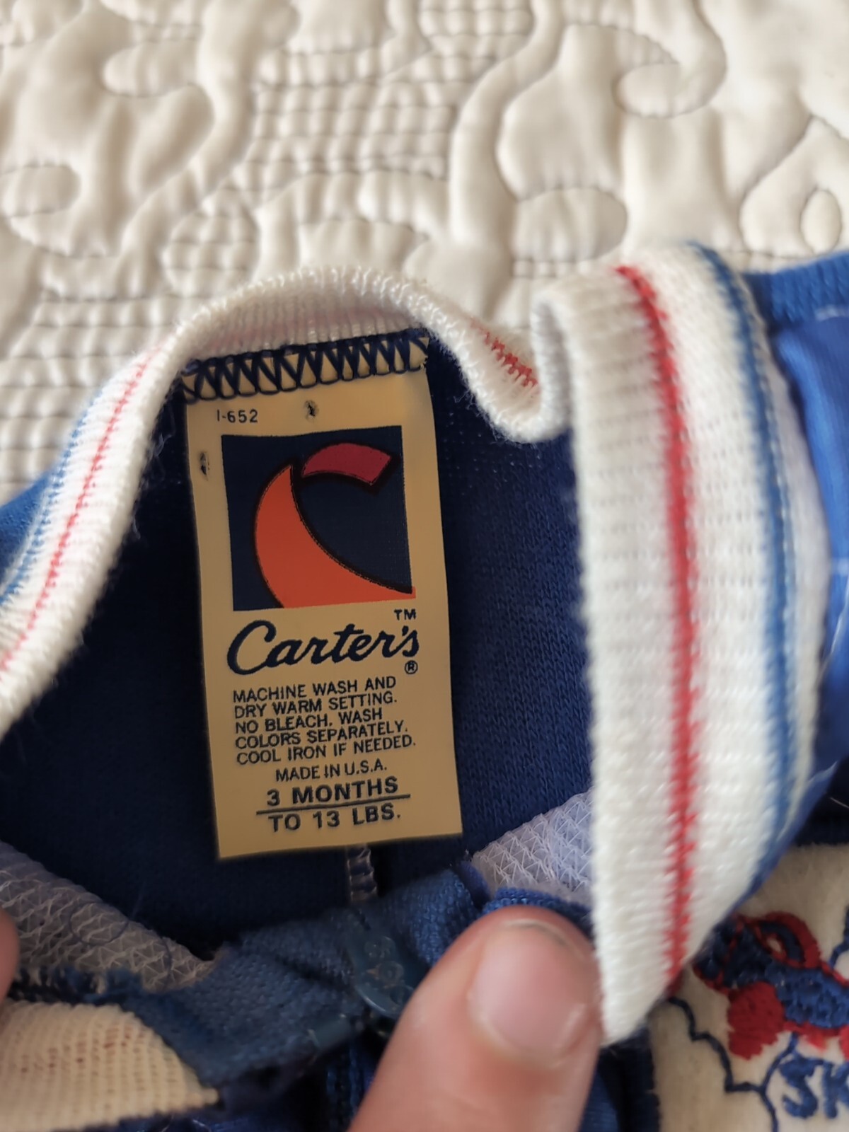 Vintage Carter s Pajamas One Piece Blue Airplane 1980s New with Tags 3 Months