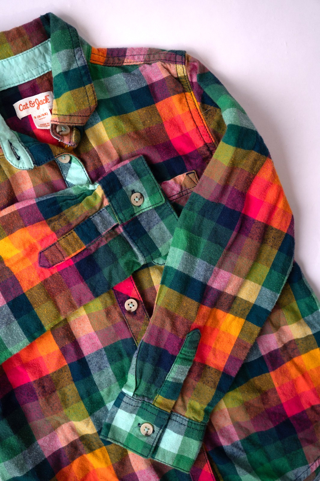 Cat Jack Girls Flannel Size Small Colorful Plaid Flannel Autumn Floral