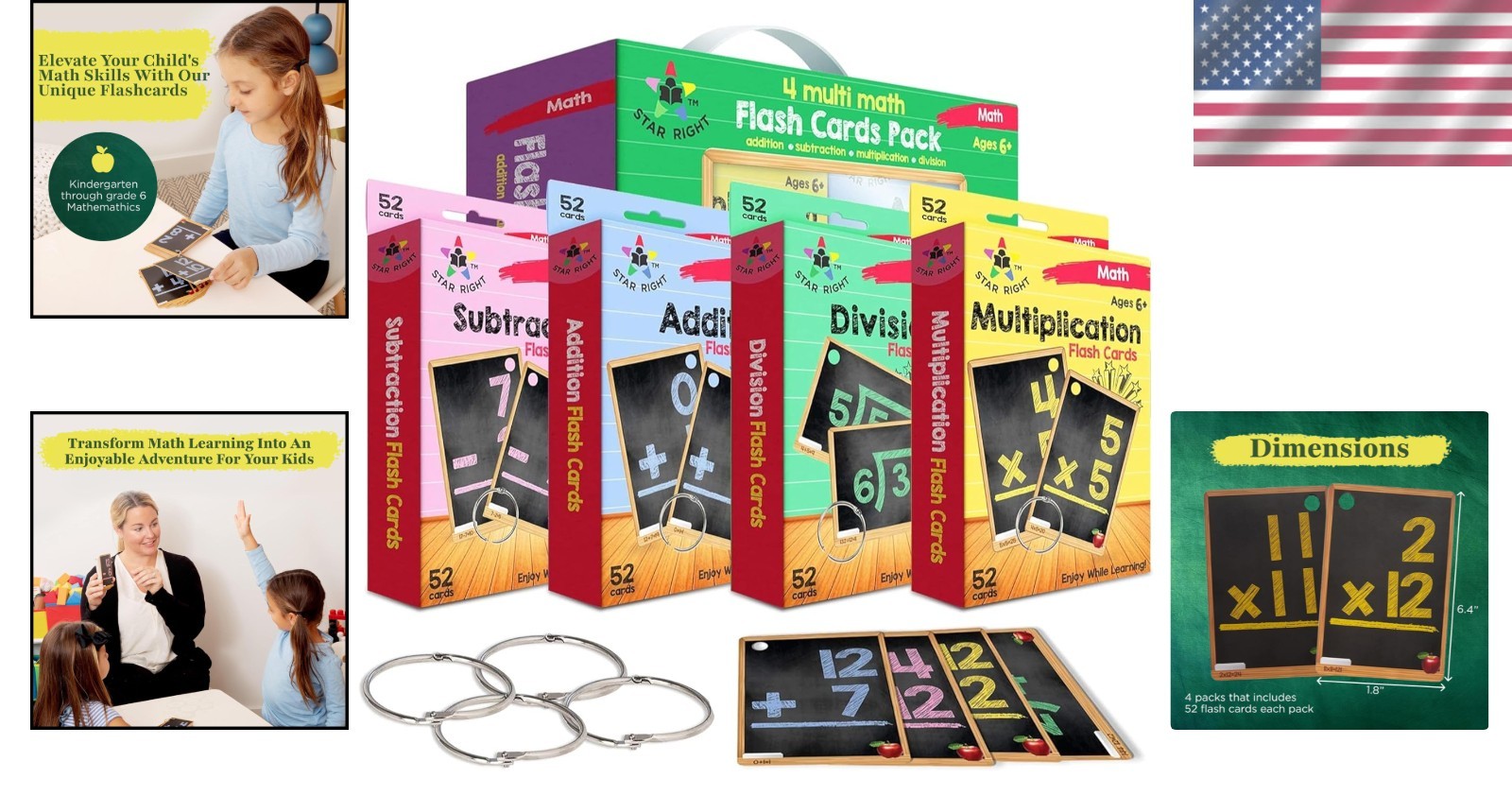 208 Math Flash Cards Set - Addition, Subtraction, Multiplication Division