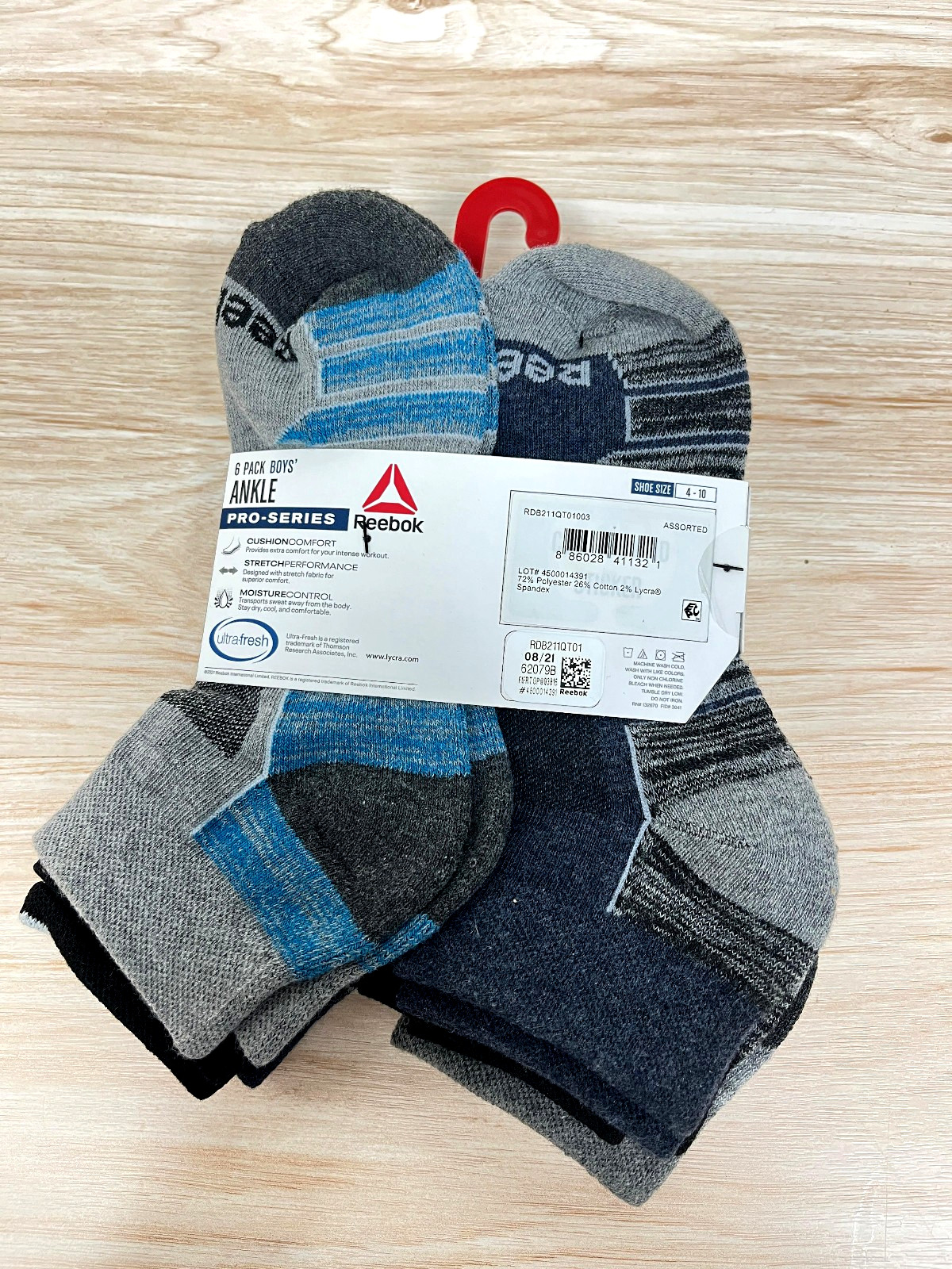 как выглядит Reebok Kids Pro Series Cotton Ankle winter Socks, 6-Pack size L 4-10 фото