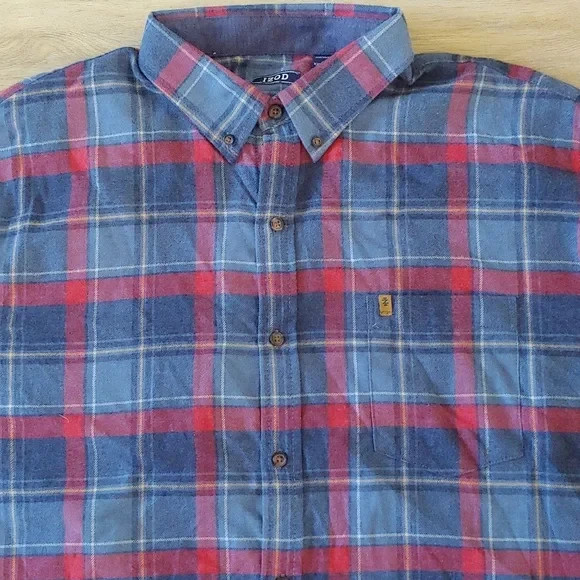 как выглядит NWT IZOD Long Sleeve Stratton Flannel Button Down Shirt Blue Size XXL фото