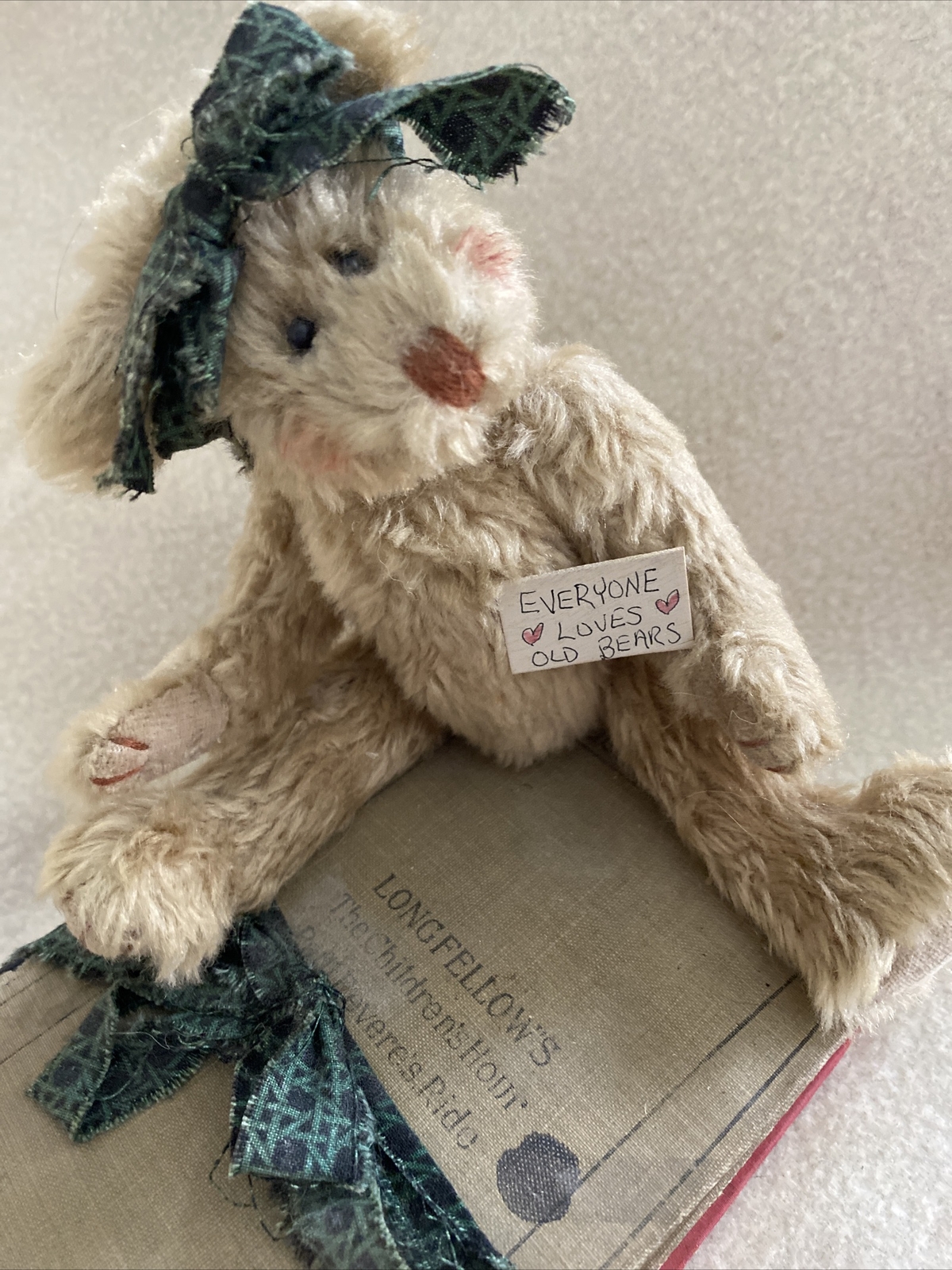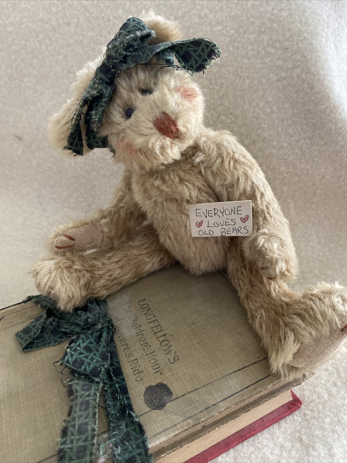 как выглядит Vintage ARTIST Created DECOR Old Jointed BEAR on Antique BOOKS фото