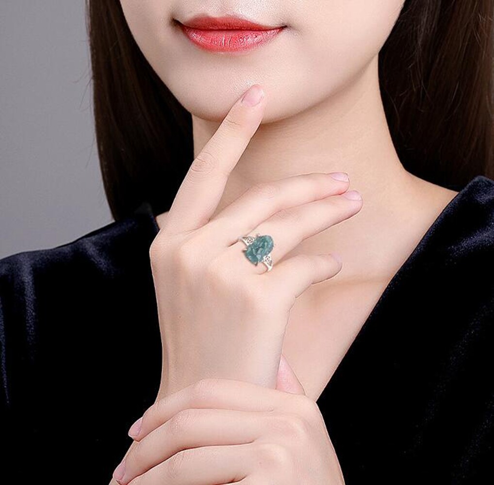 как выглядит Certified Green Natural A Jade jadeite PiXiu S925 Silver Inlay Man Woman Ring фото