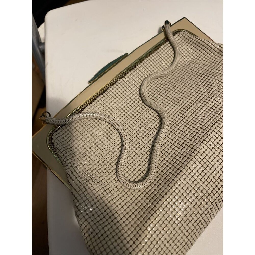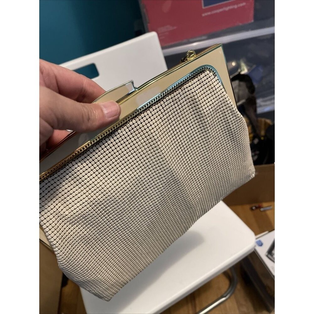 как выглядит Vtg GLOMESH Made In AUSTRALIA Light Beige Metal Mesh Gold Satin Lined Handbag 6 фото
