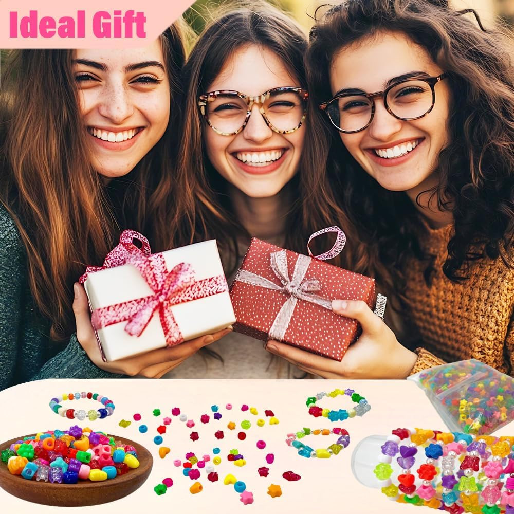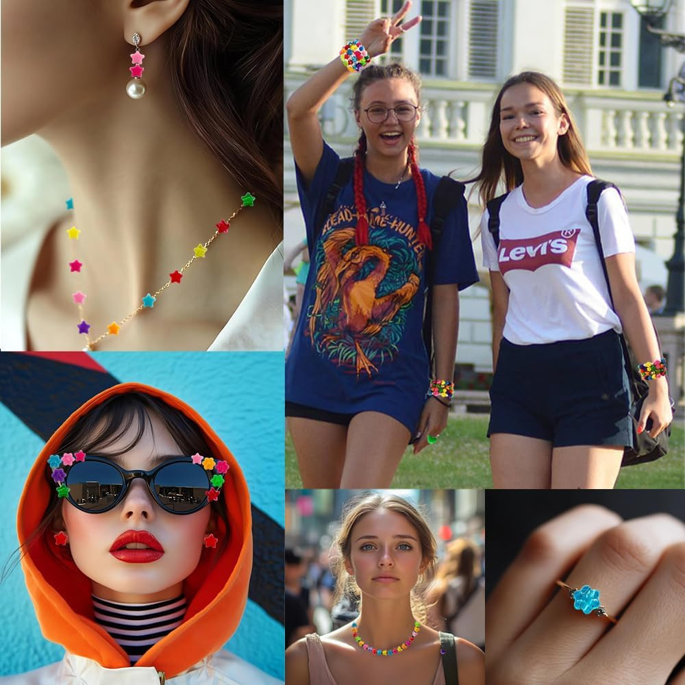 Glitter Star Pony Beads - 1000 Pcs for Jewelry Making and Hair Braids